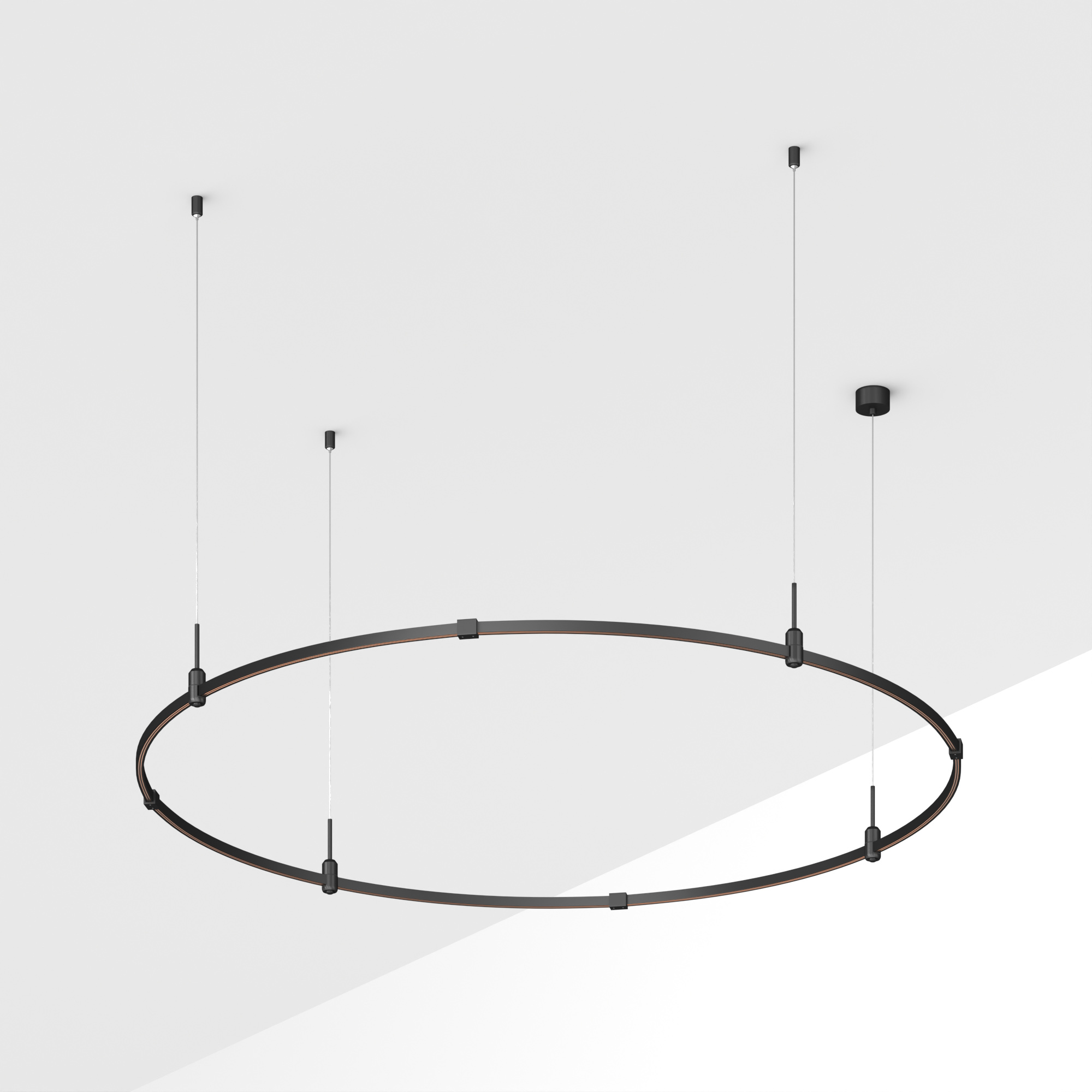 Подвесная конструкция APRIORI, форма круг. В комплекте треки с аксессуарами и гибкими подвесами длиной 1500мм Размер: диаметр 1800мм, высота 22мм. Монтируется подвесным способом. Шинопровод рассчитан на работу с безопасным напряжением DC48В. Изготавливается из алюминия, цвет черный. Светильники и источники питания приобретаются отдельно.
