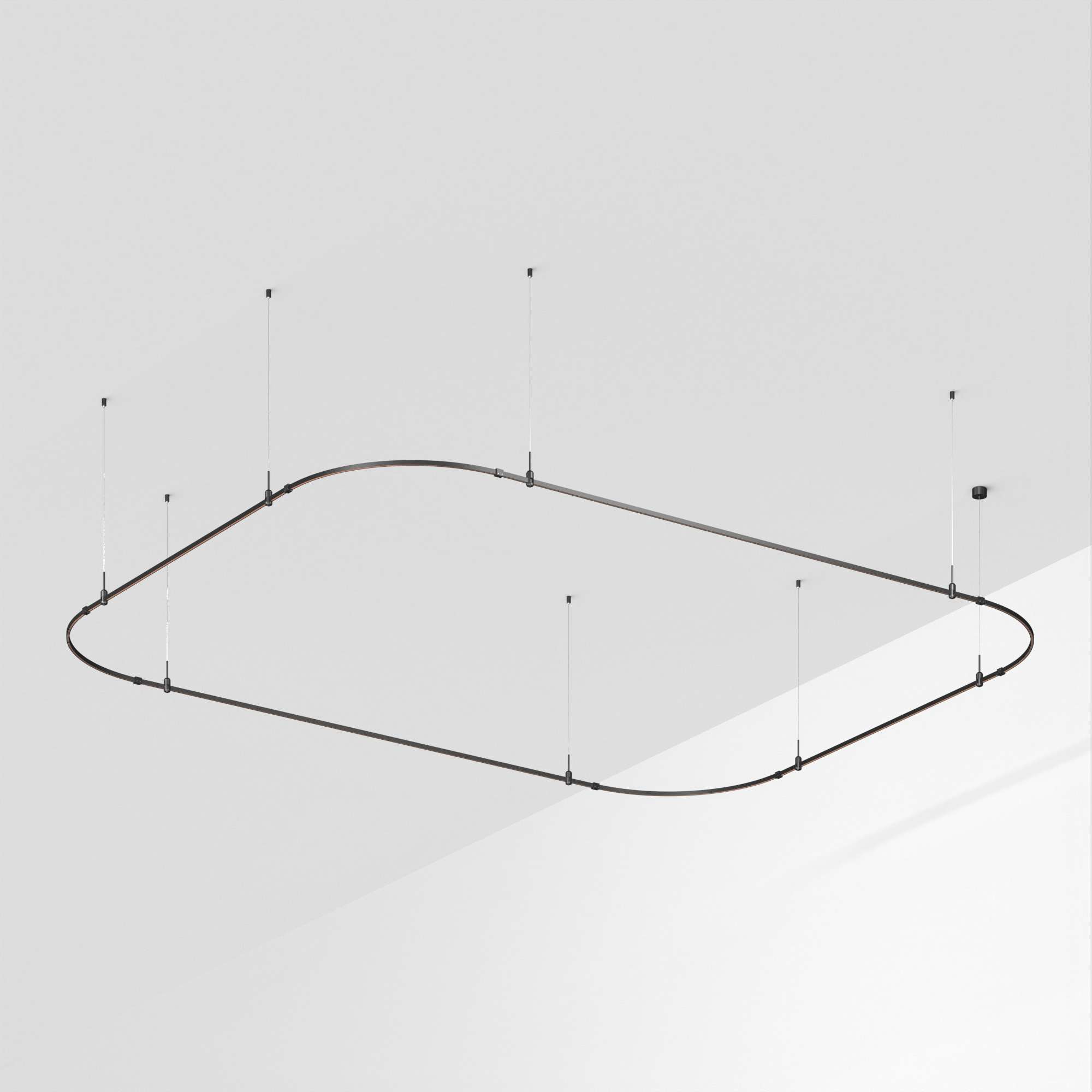 Подвесная конструкция APRIORI, форма закруглённый прямоугольник. В комплекте треки с аксессуарами и гибкими подвесами. DC48V. Материал алюминий, цвет черный. Размер ДxШxВ: 4500x3500x22мм. Светильники и источники питания приобретаются отдельно.