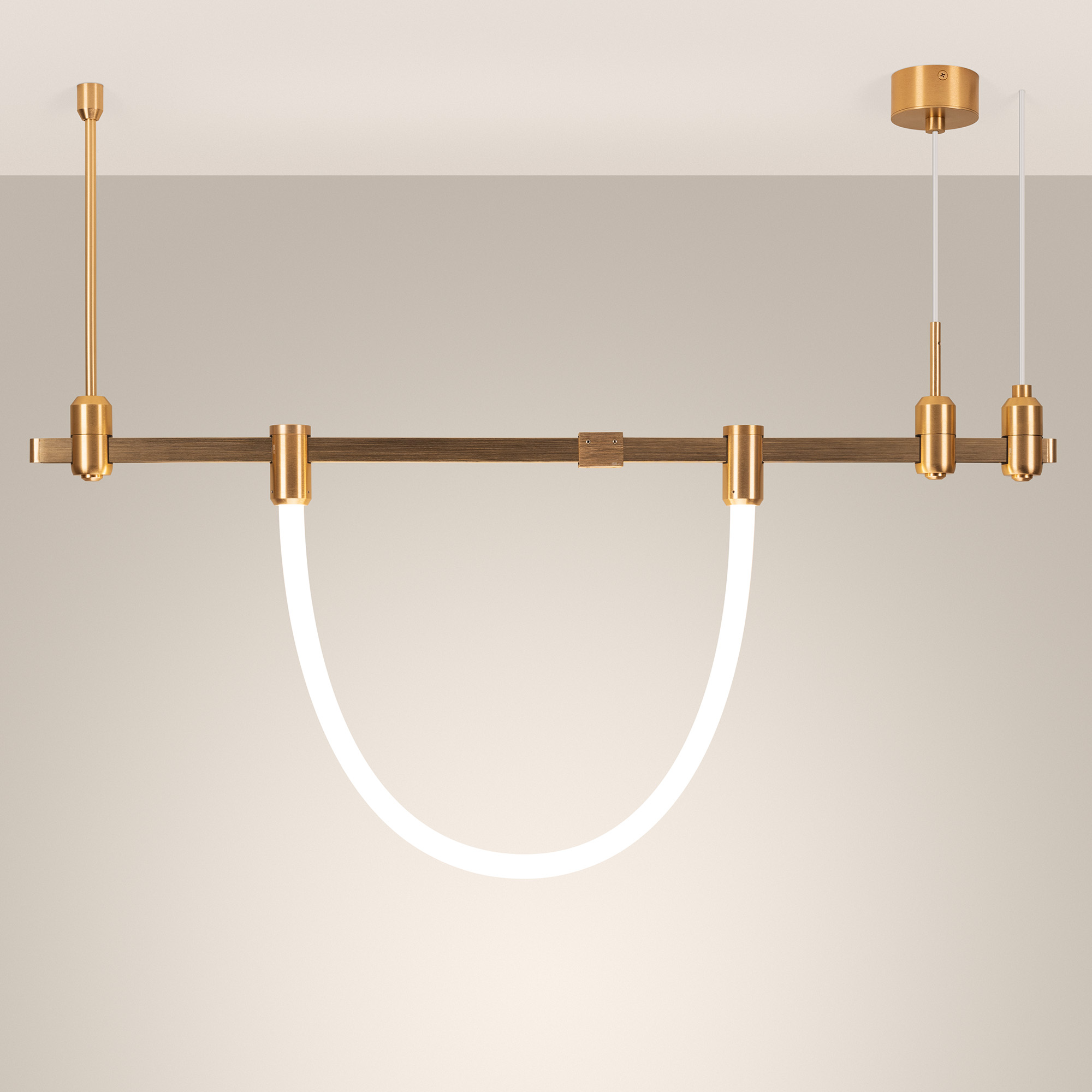 Светильник гибкий для треков APRIORI. Мощность 36 Вт, св. поток 2850 лм, 79 лм/Вт, дневной 4000 K, CRI>90, угол 360°, напряжение питания 48 В. Матовый белый фигурный корпус из силикона с креплениями, гальванизированными в цвет светлое золото, степень защиты IP20. Размер: длина 3000 мм, диаметр неона 25мм, диаметр крепления 38 мм, высота крепления 70 мм. Монтаж на трек APRIORI Пульсация <1%. Возможно диммирование по ШИМ (PWM) или не адресное управление при использовании диммируемого драйвера Dali, 0-10V, TRIAC.
