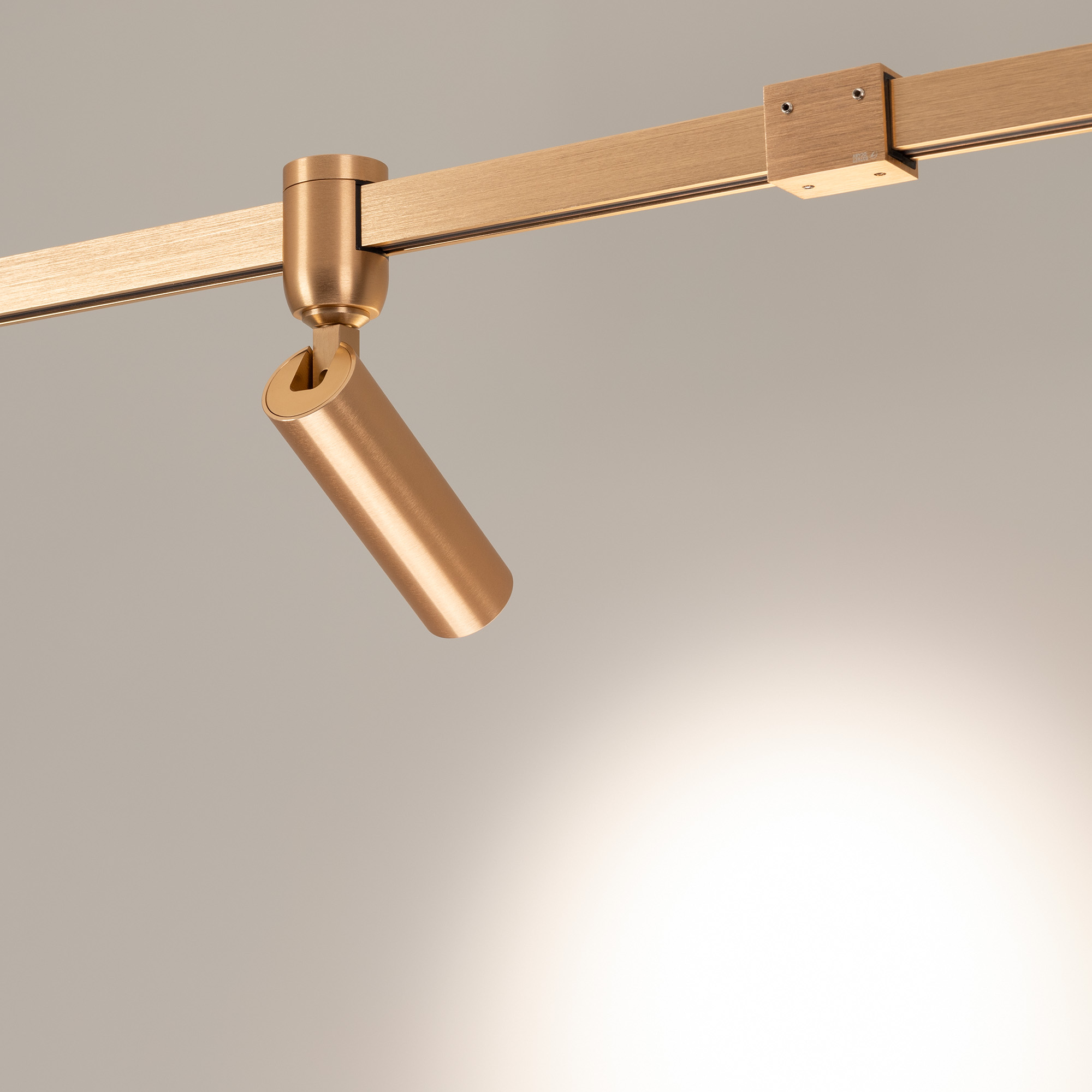 Светильник поворотный для треков APRIORI шириной 17 мм. Мощность 8 Вт, св. поток 580 лм, 73 лм/Вт, дневной 4000 K, CRI>92, угол 36°, напряжение питания 48 В. Фигурный корпус из алюминия, анодированного в цвет светлое золото, степень защиты IP20. Размер: Ø38 x 187 мм. Монтаж на трек APRIORI 17 мм. Пульсация <1%. Возможно диммирование по ШИМ (PWM) или не адресное управление при использовании диммируемого драйвера Dali, 0-10V, TRIAC.