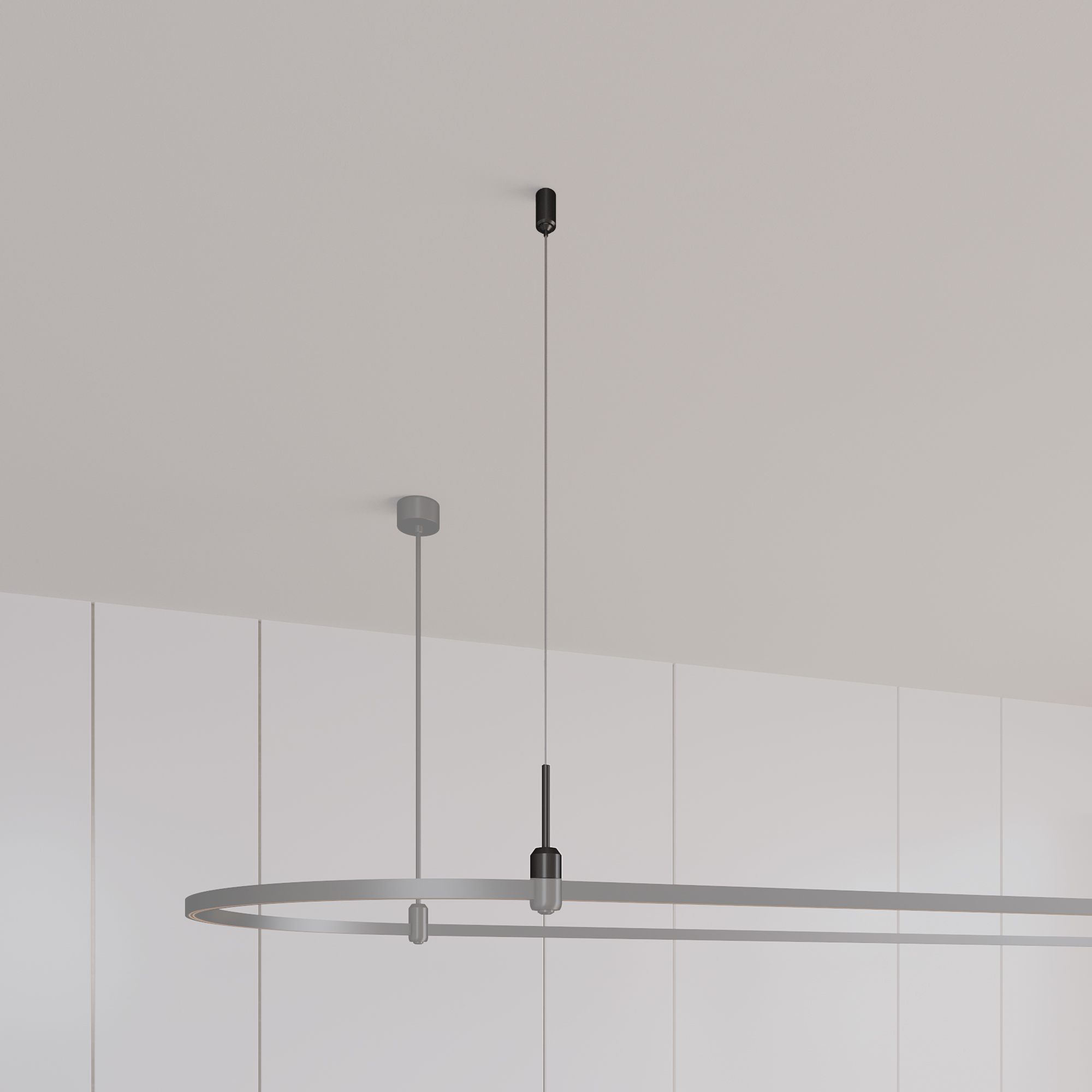 Подвес гибкий HANG-A с регулируемым тросом длиной 5000 мм используется для подвесного монтажа треков системы APRIORI к потолку или другой поверхности. Минимальная высота подвеса 160 мм. Размер: Ø20 х 5000 х Ø38 мм. Подвес имеет тип нижнего крепления A. Совместим с держателями трека тип А. Не проводит электричество. Изготавливается из алюминия, окрашенного в черный цвет.