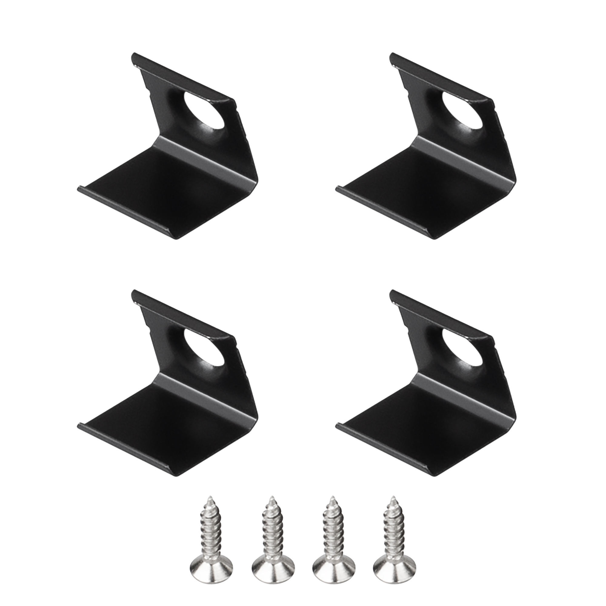Комплект держателей профиля KANT-H10 черного цвета. В комплекте 4 держателя, 4 шурупа. Материал - сталь. Цена за комплект.