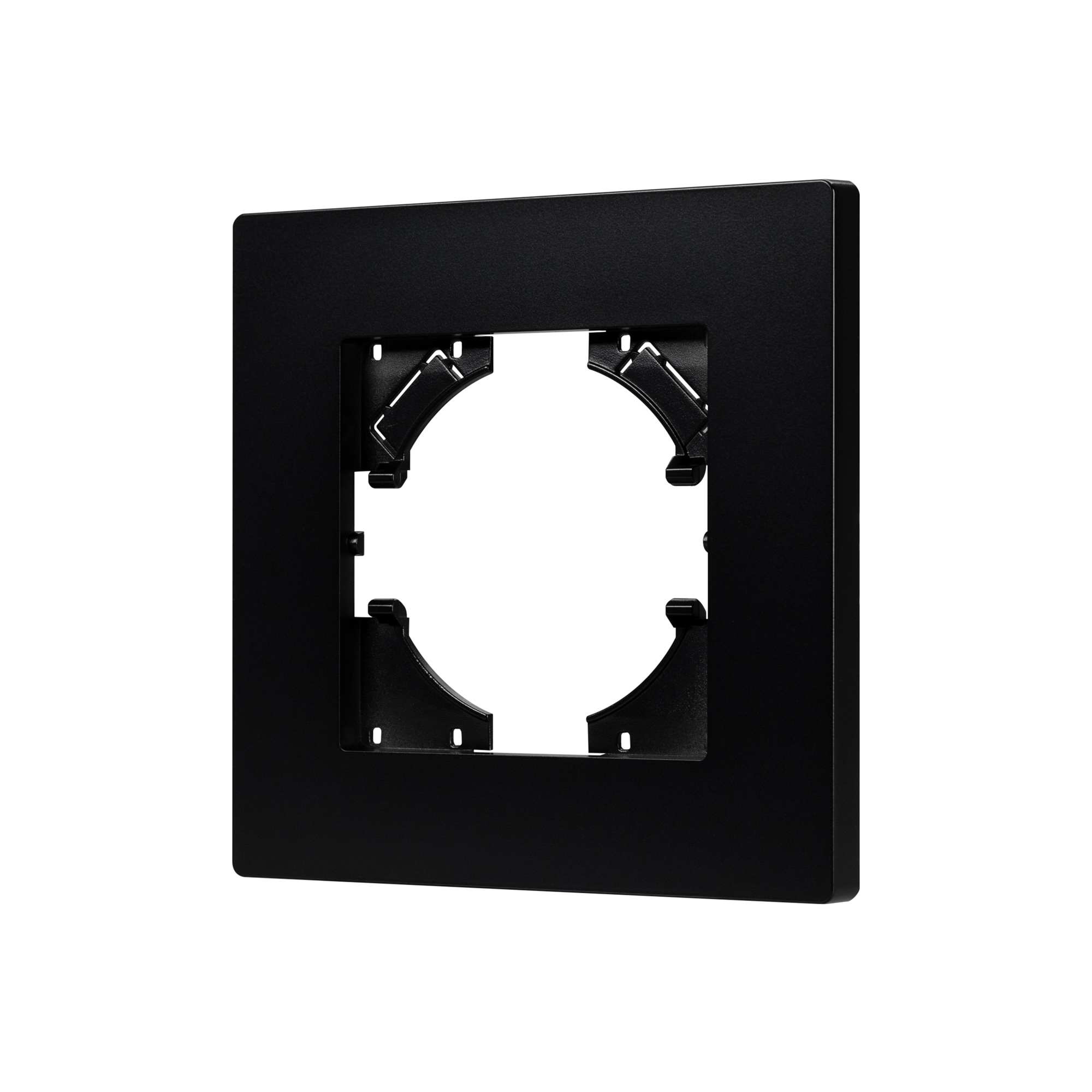 Рамка из серии PERIO изготовлена из высококачественного пластика. Корпус выполнен в черном цвете и матированным покрытием с высотой 7мм, что позволяет гармонично встроить в интерьер любого современного дизайн-проекта. Предназначена под встраиваемые механизмы.