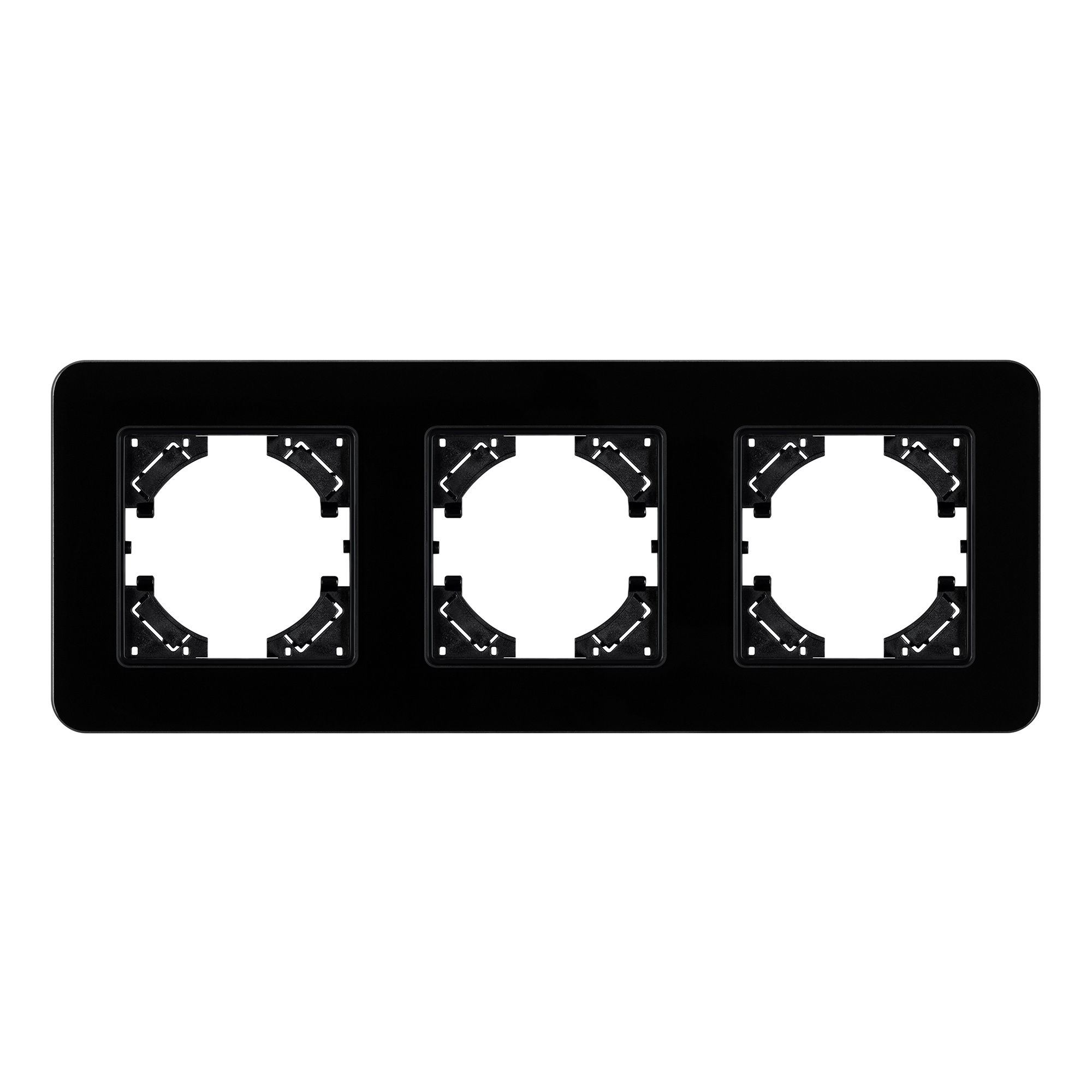 Рамка стеклянная на 3 поста, под встраиваемый механизм. Цвет - черный. Уровень герметичности IP20. Ориентация монтажа - горизонтальная (основным ориентиром служат посадочные выступы для накладки механизма).