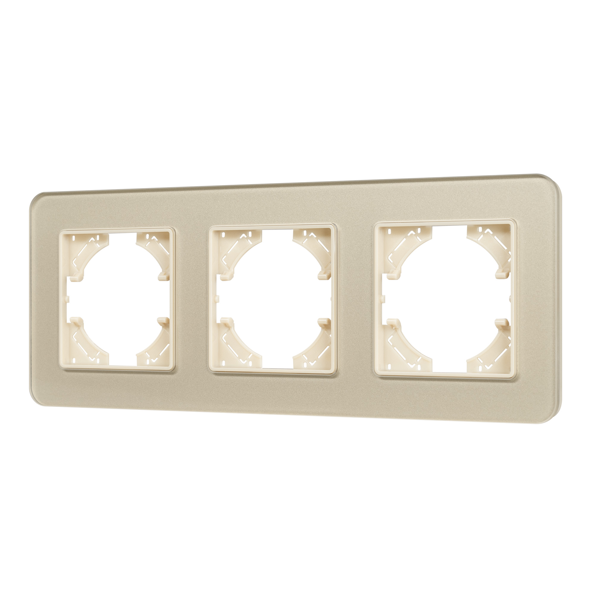 Рамка стеклянная на 3 поста, под встраиваемый механизм. Цвет - золотой. Уровень герметичности IP20. Ориентация монтажа - горизонтальная (основным ориентиром служат посадочные выступы для накладки механизма).