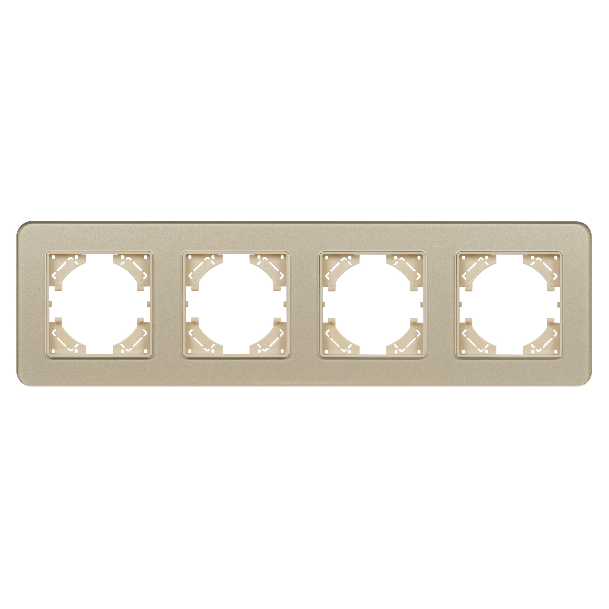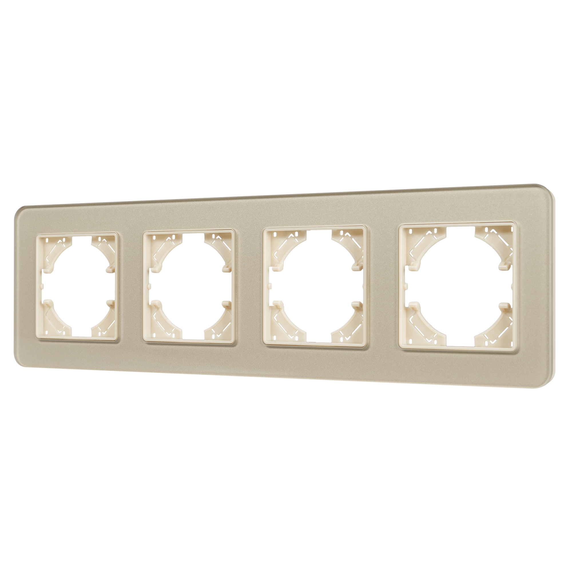 Рамка стеклянная на 4 поста, под встраиваемый механизм. Цвет - золотой. Уровень герметичности IP20. Ориентация монтажа - горизонтальная (основным ориентиром служат посадочные выступы для накладки механизма). Габаритные размеры: длина 299 мм, ширина 86 мм, высота 7 мм. Гарантийный срок 12 мес.