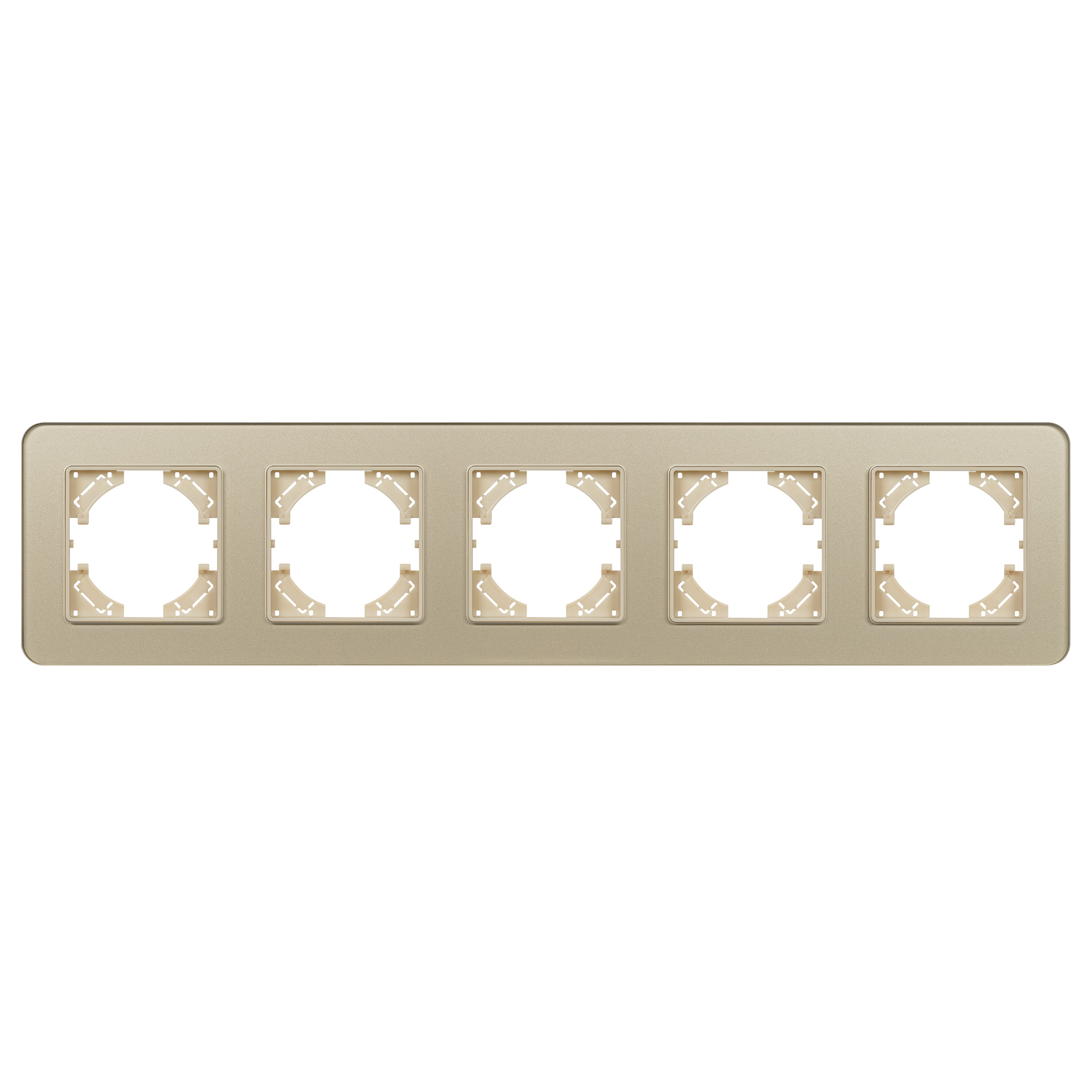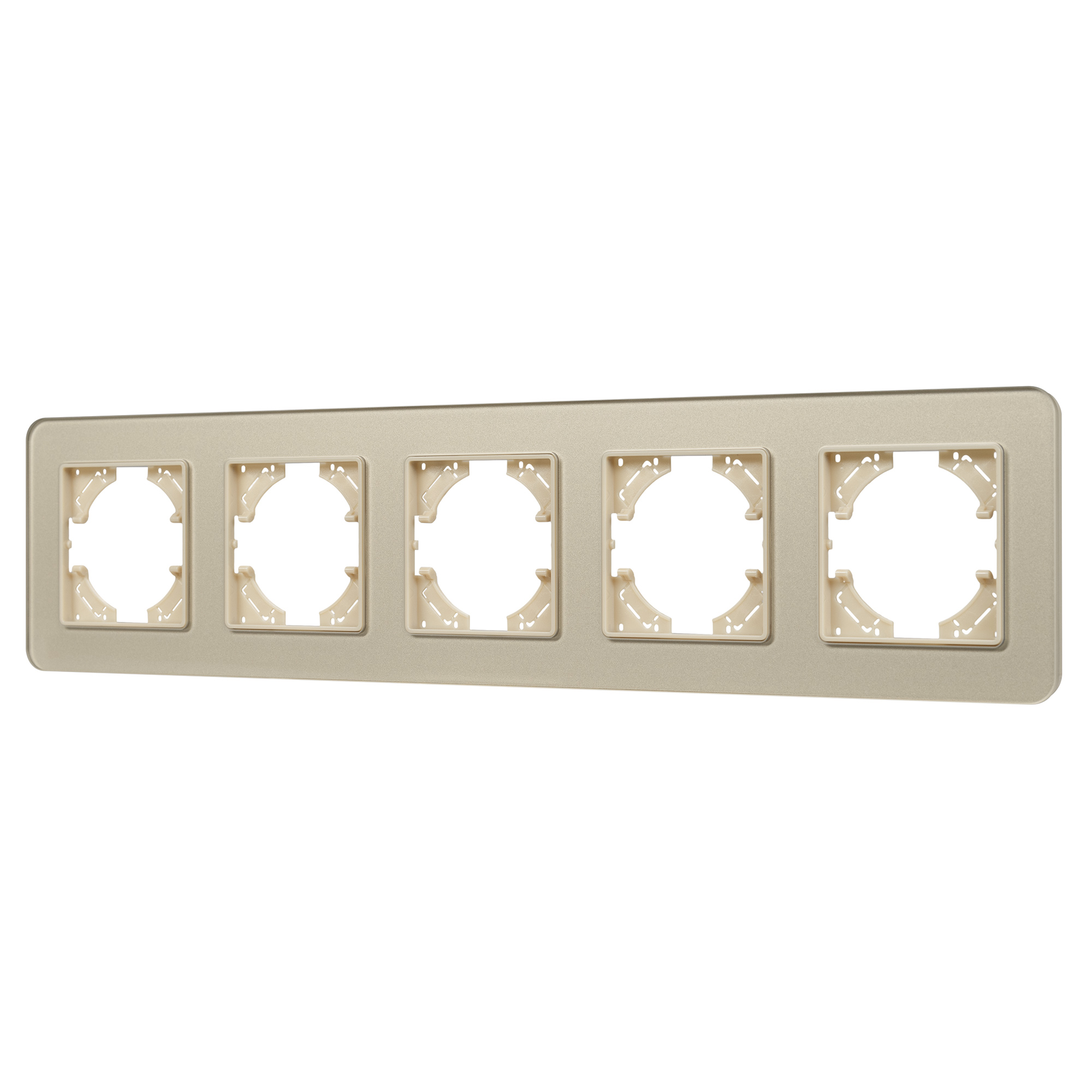 Рамка стеклянная на 5 постов, под встраиваемый механизм. Цвет - золотой. Уровень герметичности IP20. Ориентация монтажа - горизонтальная (основным ориентиром служат посадочные выступы для накладки механизма). Габаритные размеры: длина 370 мм, ширина 86 мм, высота 7 мм. Гарантийный срок 12 мес.