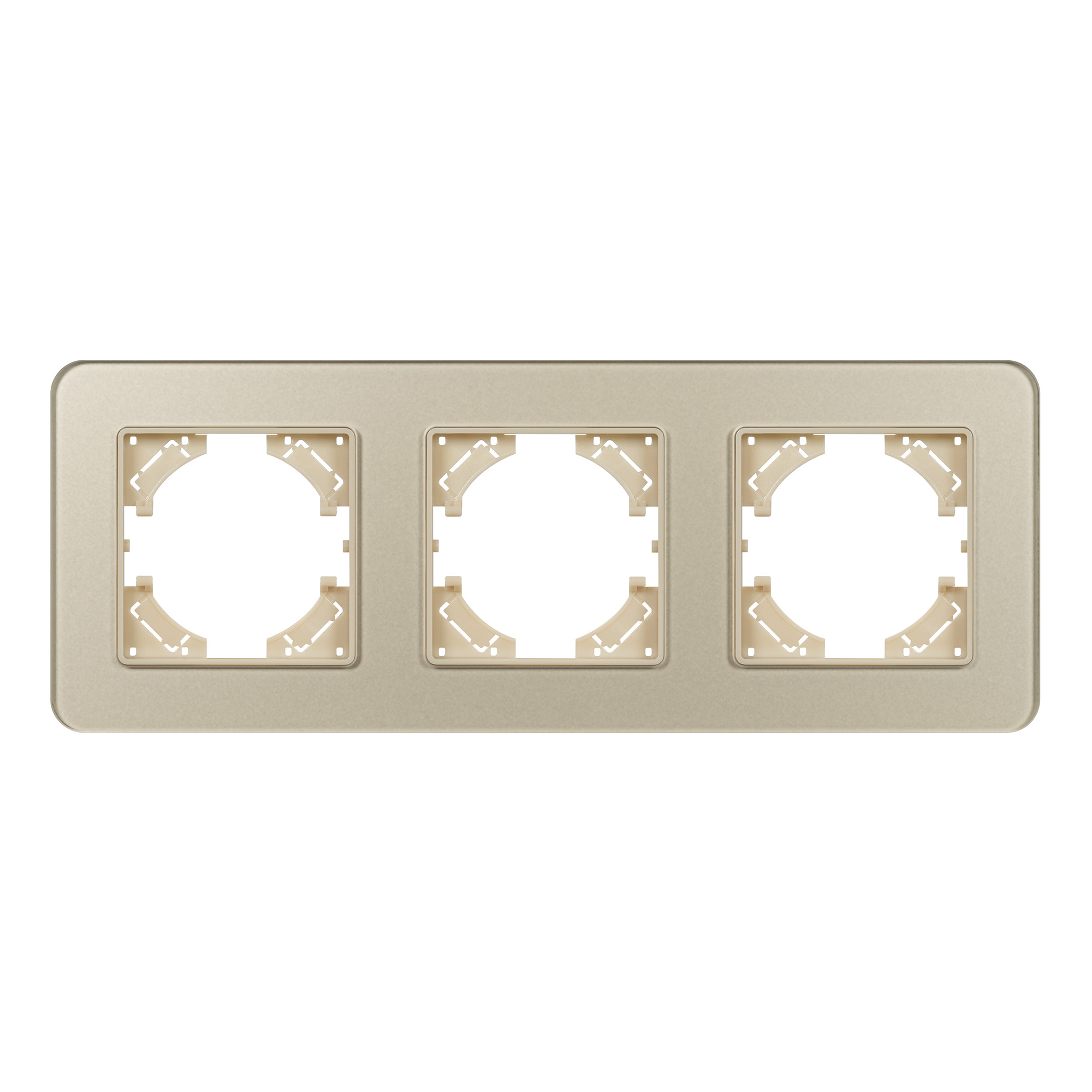 Рамка стеклянная на 3 поста, под встраиваемый механизм. Цвет - золотой с Soft-Touch покрытием. Уровень герметичности IP20. Ориентация монтажа - горизонтальная (основным ориентиром служат посадочные выступы для накладки механизма). Габаритные размеры: длина 228 мм, ширина 86 мм, высота 7 мм. Гарантийный срок 12 мес.
