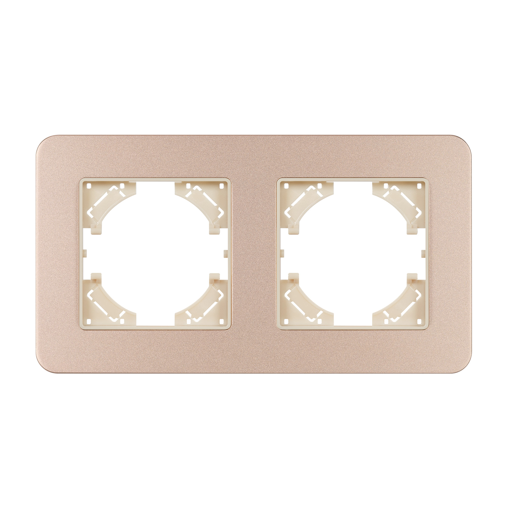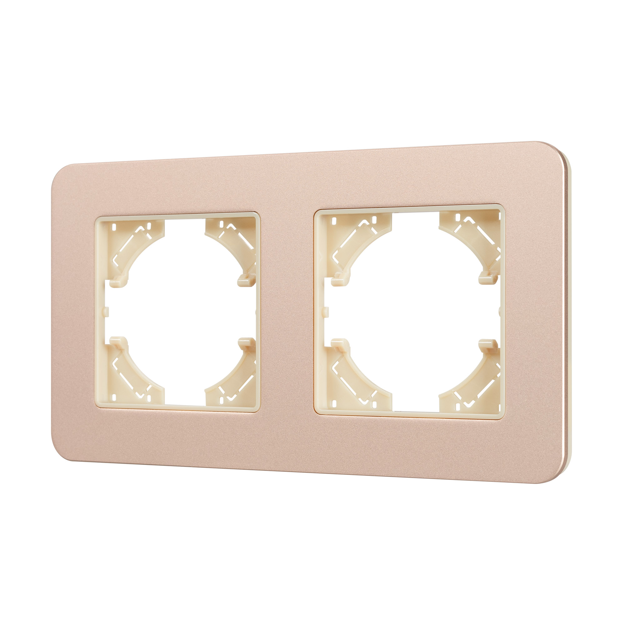 Рамка алюминиевая на 2 поста, под встраиваемый механизм. Цвет - золотой с Soft-Touch покрытием. Уровень герметичности IP20. Ориентация монтажа - горизонтальная (основным ориентиром служат посадочные выступы для накладки механизма). Габаритные размеры: длина 157 мм, ширина 86 мм, высота 7 мм. Гарантийный срок 12 мес.