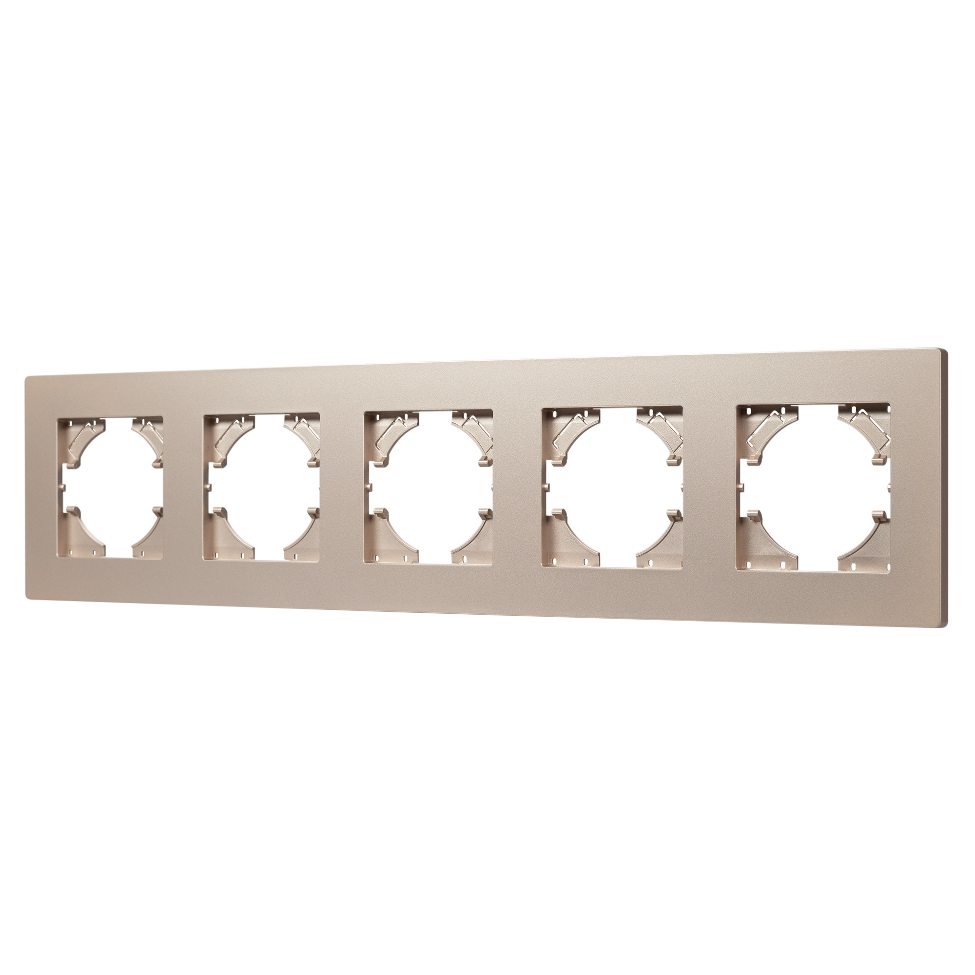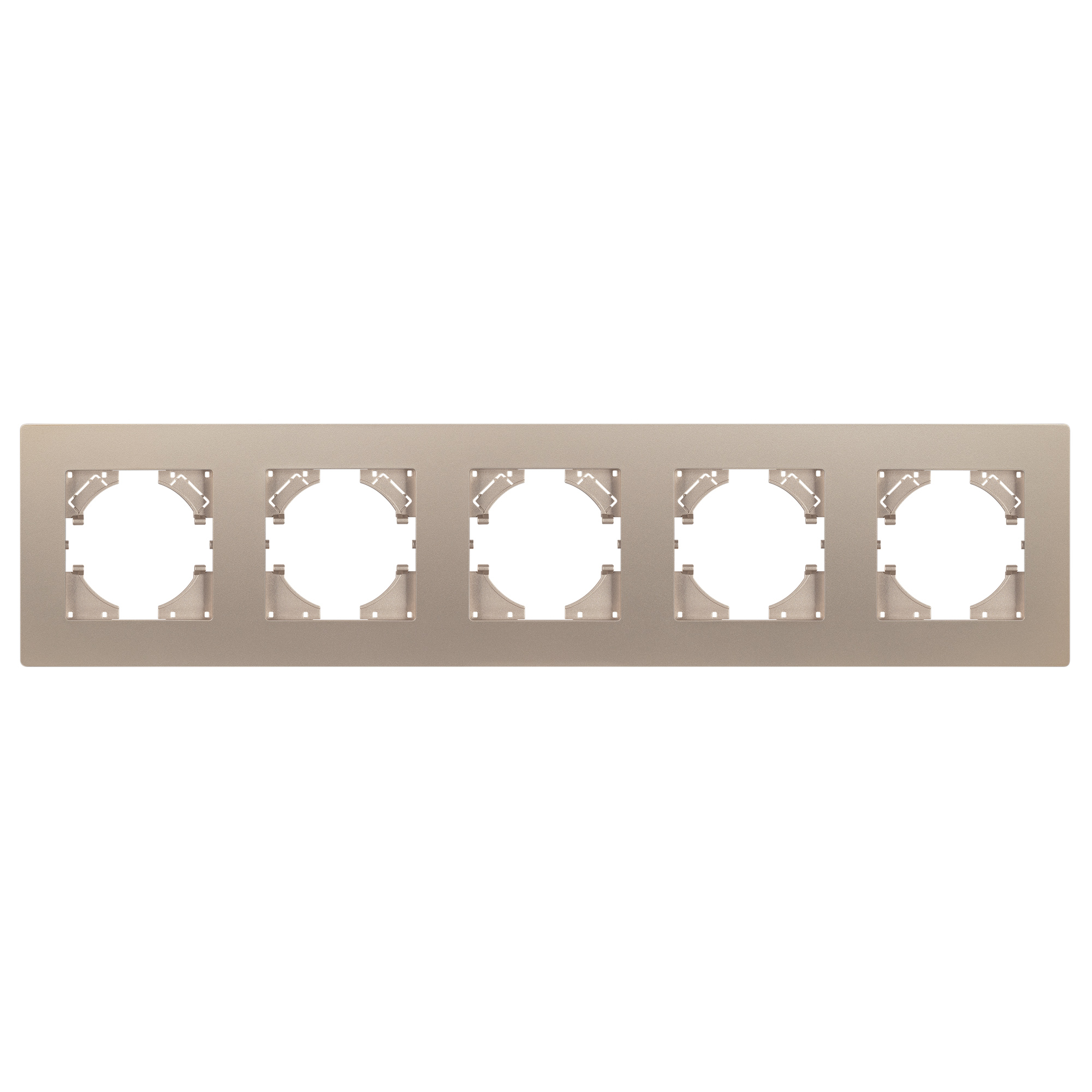 Рамка пластиковая на 5 постов, под встраиваемый механизм. Цвет - золотой. Уровень герметичности IP20. Ориентация монтажа - горизонтальная (основным ориентиром служат посадочные выступы для накладки механизма). Габаритные размеры: длина 370 мм, ширина 86 мм, высота 7 мм. Гарантийный срок 12 мес.