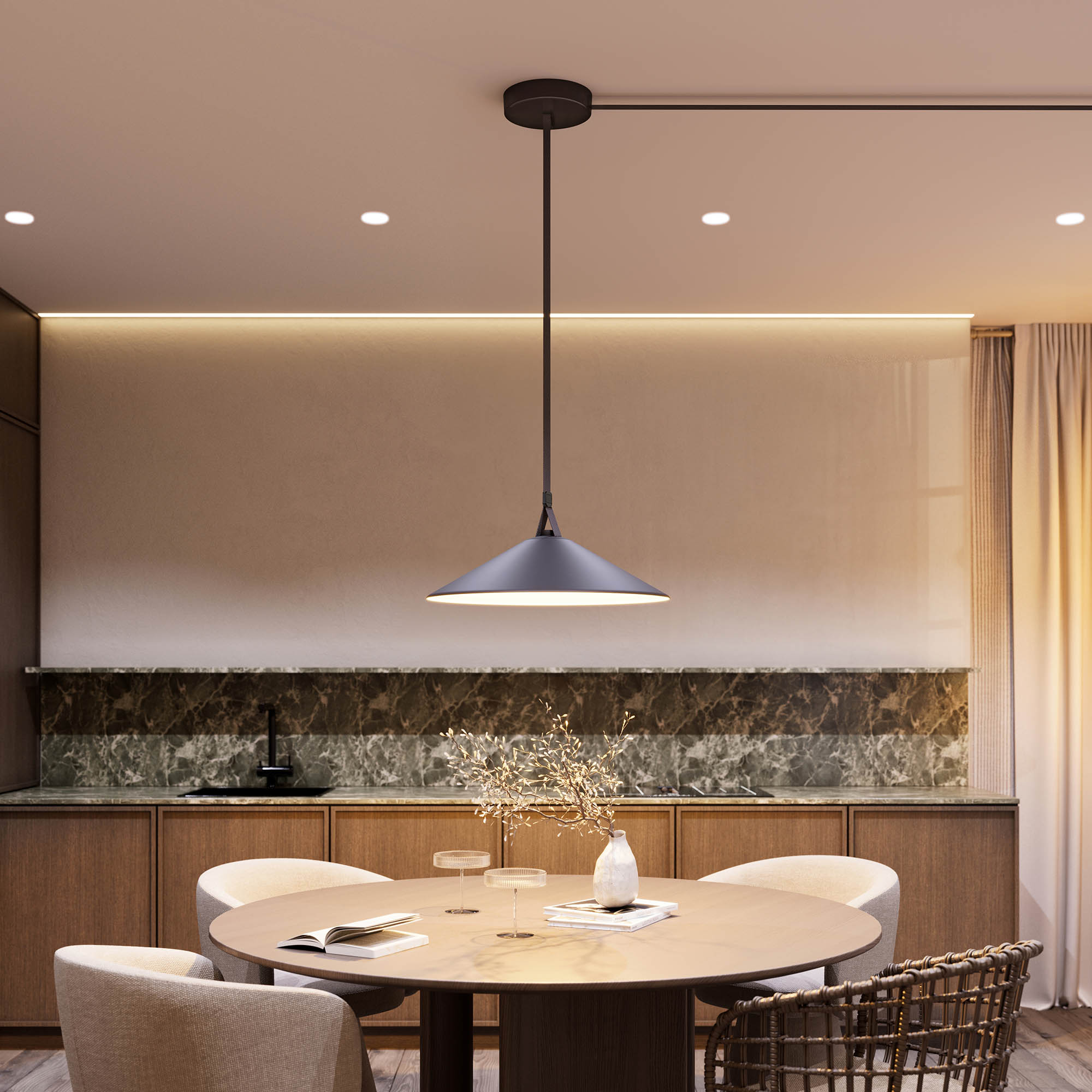 Накладной интерьерный светодиодный светильник ART-INBELT-WOK-R430-15W Day4000-MIX (BK, 110 deg, 48V, DALI) мощностью 15 Вт для системы серии INBELT. Изменяемая цветовая температура от 2700 до 6500 К. Высокий индекс цветопередачи CRI>92 и пульсация менее 5% гарантируют качественное освещение, комфортное для глаз, и обеспечивает точное восприятие цветов и отсутствие мерцания. Конусообразный корпус, размером 430*110 мм. Монтаж выполняется на гибкий трек-ремень. Разнообразие аксессуаров позволяет выбирать точки крепления системы на любой поверхности (пол/потолок/стена). Широкий угол излучения 110° позволяет создавать мягкое равномерное освещение. Управление разными сценариями, яркостью и цветовой температурой от теплого до холодного оттенка возможно с помощью протокола управления DALI. Низкое напряжение питания системы 48В безопасно в эксплуатации. Драйвер для подключения 48В поставляется отдельно.
