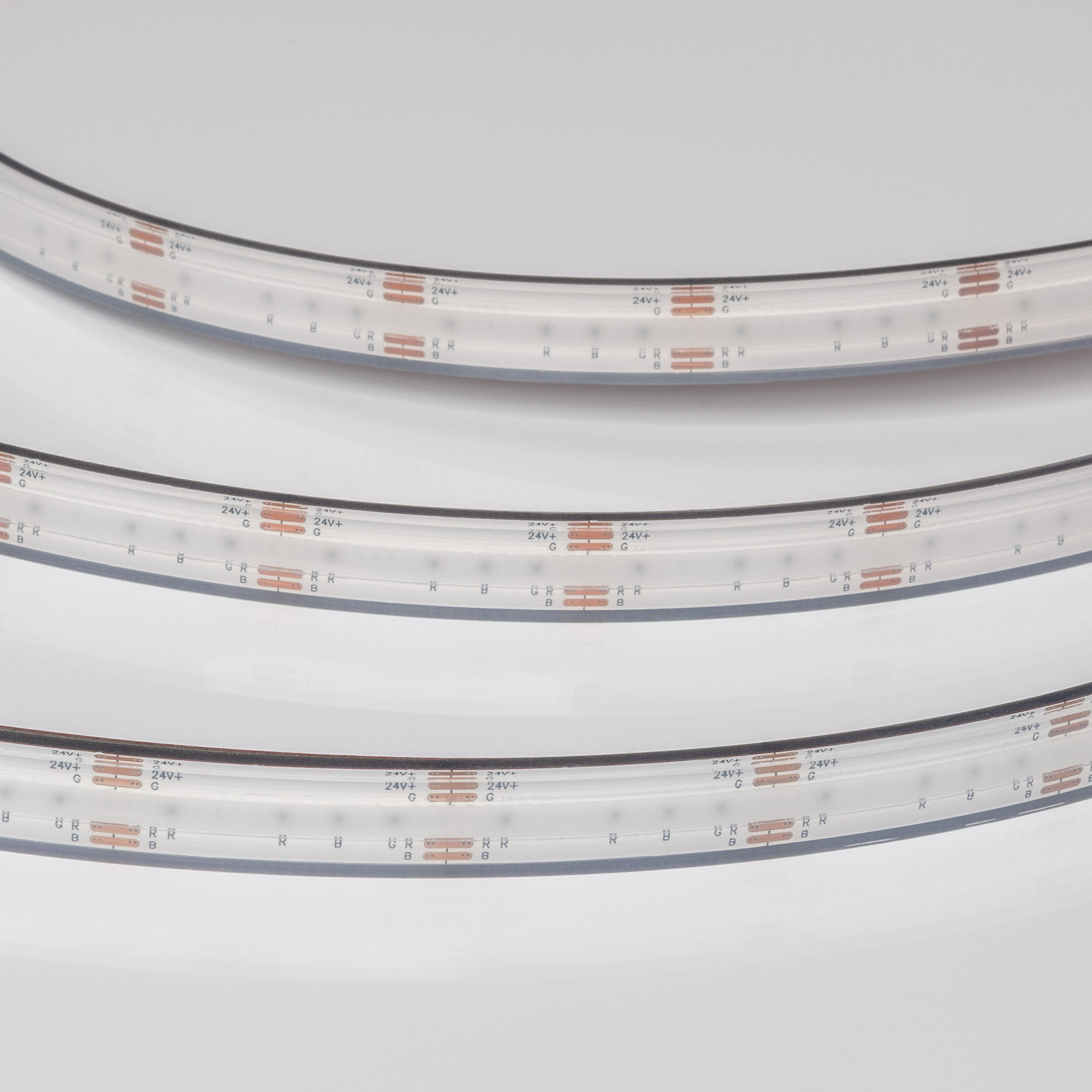 Светодиодная герметичная лента сплошной засветки без видимых светодиодов серии CSP X540, IP68 (PFS - полная силиконовая экструзия). Светодиоды CSP, 540 шт/м (2700 шт на 5 м), белая плата шириной 10 мм. Цвет RGB, угол 160°. Питание 24 В, мощность 15 Вт/м (75 Вт на 5 м). Размеры 5000x12x5 мм. Мин. отрезок 33.33 мм. Цена за 1 м.