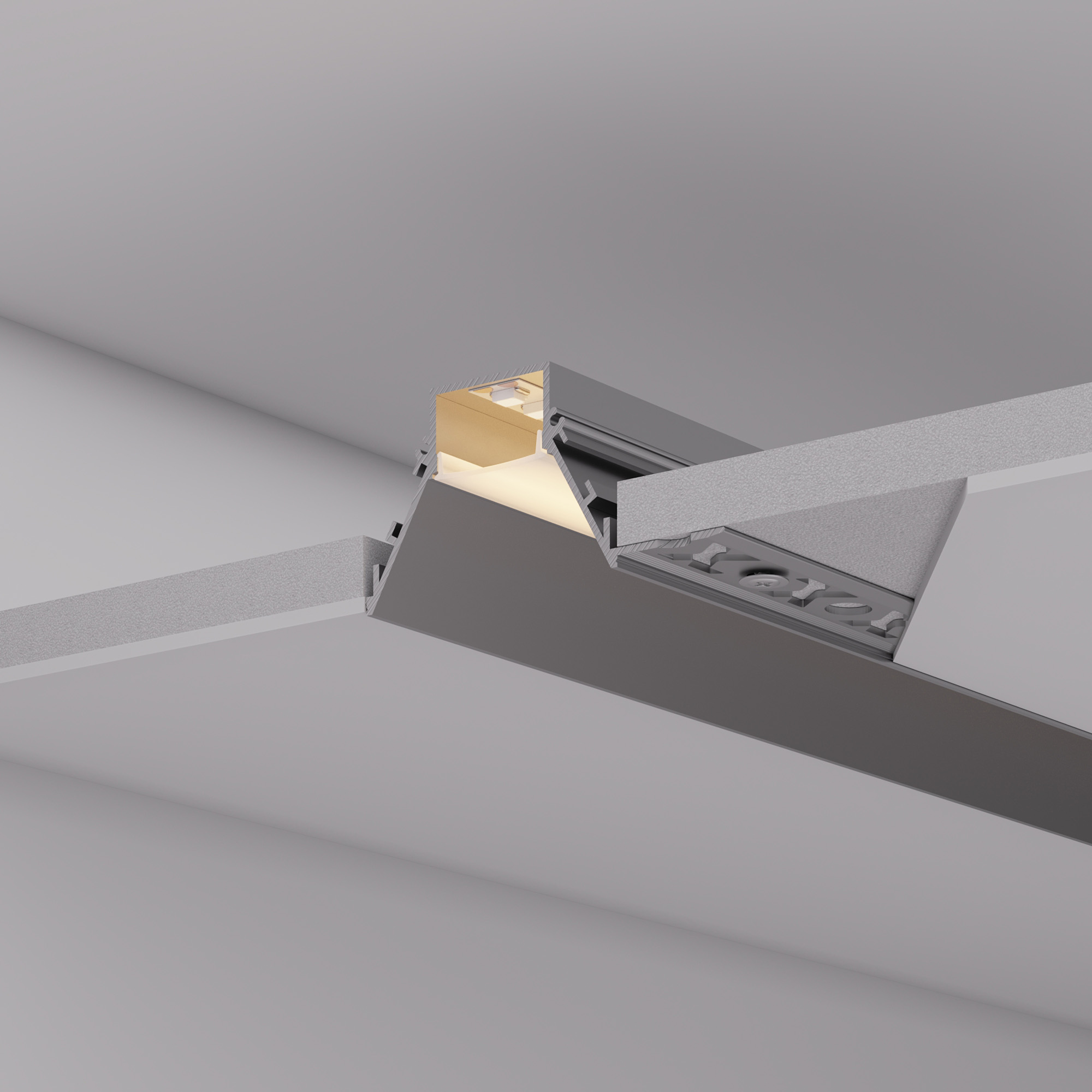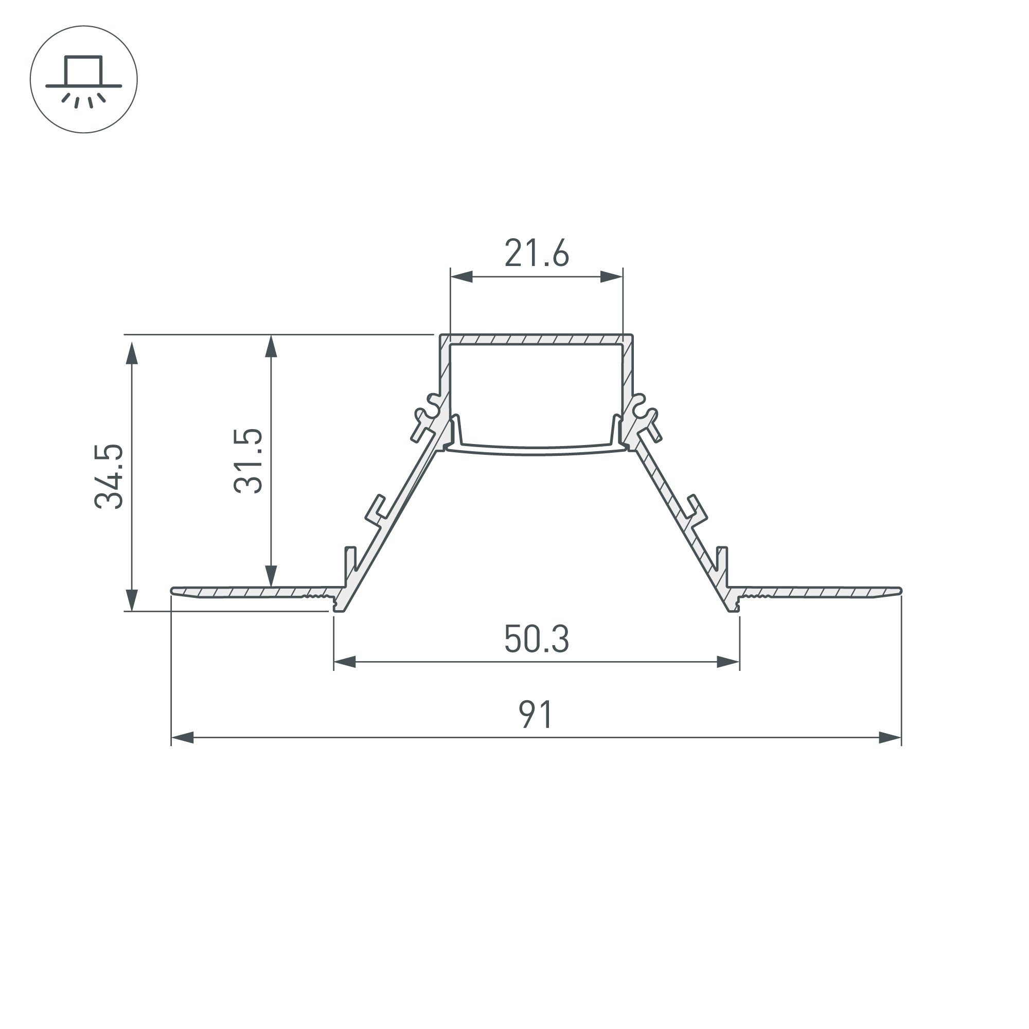 Встраиваемый профиль со скрытым фланцем под строительную отделку из анодированного алюминия для основной и контурной подсветки помещений. Экран утоплен в плоскости профиля, что позволяет скрыть источник света от прямого контакта с глазами. Габаритные размеры профиля составляют 2000 мм в длину, 91 мм в ширину и 34,5 мм в высоту. Площадка для установки светодиодных лент позволяет использовать ленту шириной до 21,6 мм и мощностью до 37,8 Вт/м. Это обеспечивает гибкость в выборе светодиодных лент и создает потрясающие световые решения.