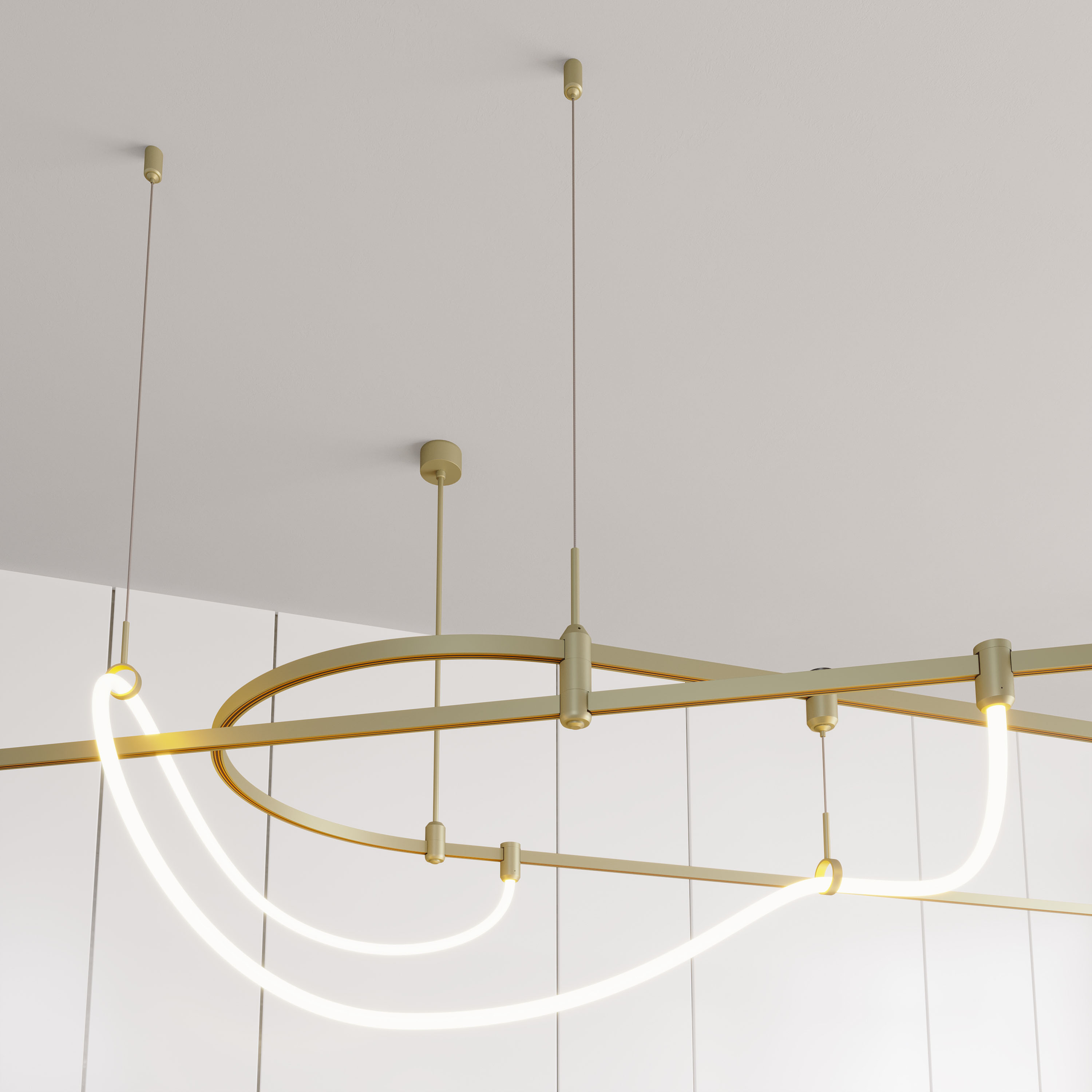Светильник гибкий для треков APRIORI. Мощность 12 Вт, св. поток 950 лм, 79 лм/Вт, дневной 4000 K, CRI>90, угол 360°, напряжение питания 48 В. Матовый белый фигурный корпус из силикона с креплениями, гальванизированными в цвет серо-оливковый, степень защиты IP20. Размер: длина 1000 мм, диаметр неона 25мм, диаметр крепления 38 мм, высота крепления 70 мм. Монтаж на трек APRIORI Пульсация <1%. Возможно диммирование по ШИМ (PWM) или не адресное управление при использовании диммируемого драйвера Dali, 0-10V, TRIAC.