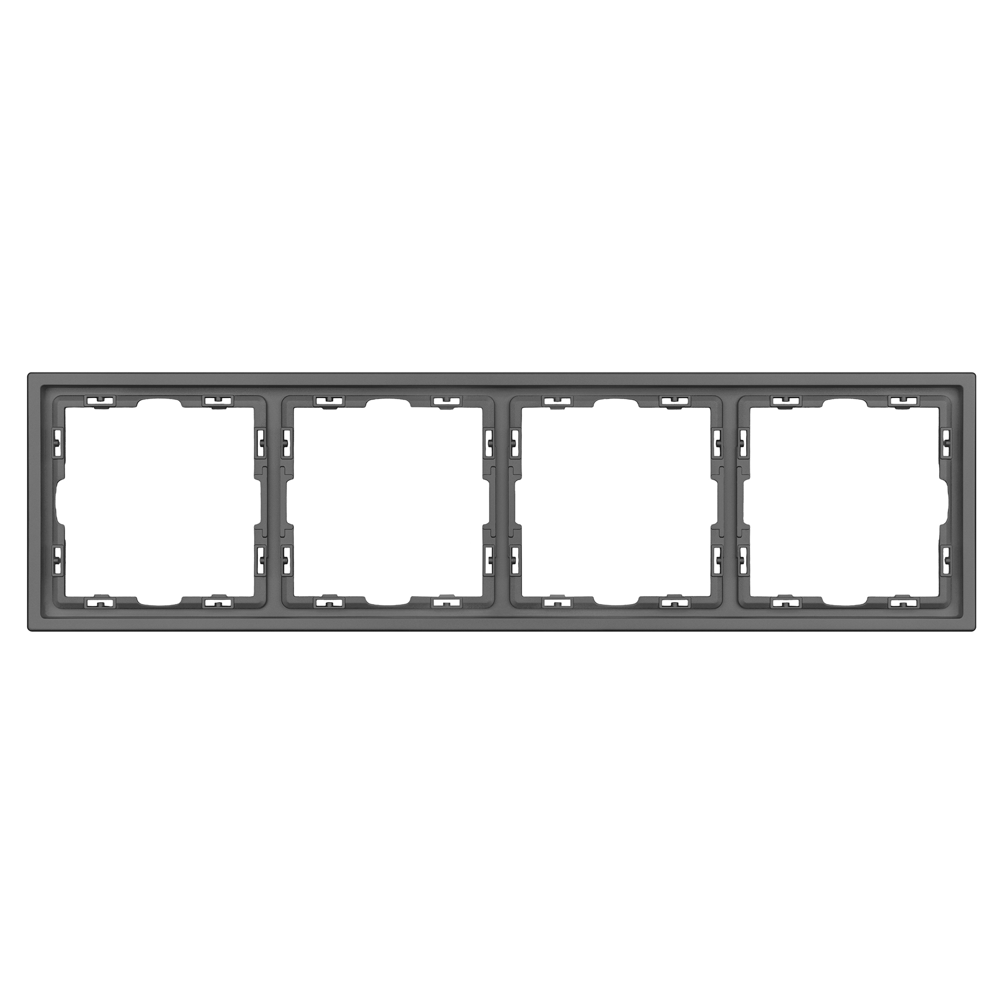 Рамка пластиковая на 4 поста, под встраиваемый механизм. Цвет - серый базальт, с Soft-Touch покрытием. Среднего уровня герметичности IP20. Ориентация монтажа горизонтальная. Габаритные размеры: длина 294 мм, ширина 81 мм, высота 8.55 мм. Гарантийный срок 12 мес.