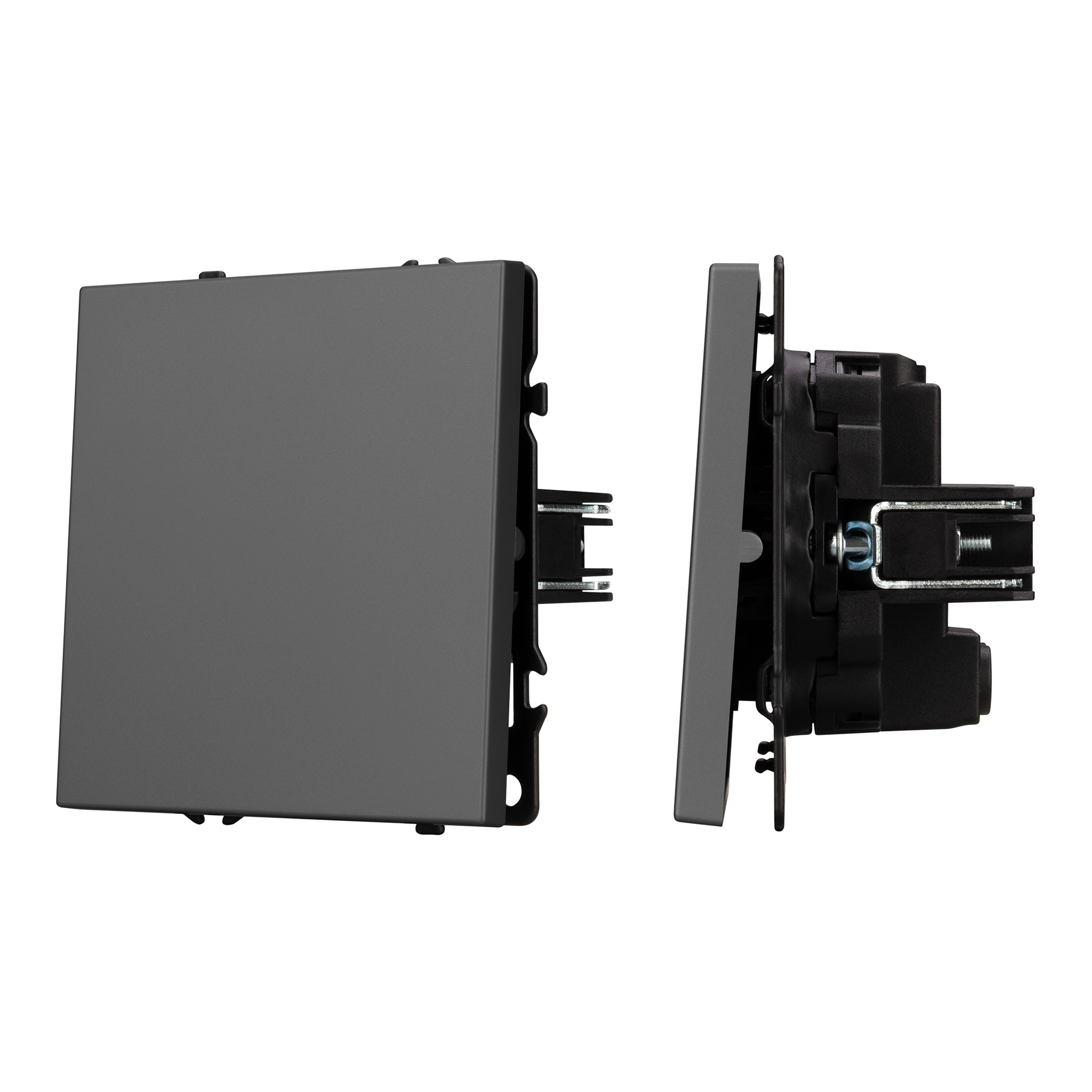 Механизм выключателя света клавишный на 1 пост 1 клавиша (перекрёстный). Цвет - серый базальт, с Soft-Touch покрытием. Без фронтальной рамки. Уровень пылевлагозащиты IP20. Выключатель устанавливается в стандартный круглый подрозетник круглого сечения диаметром 60мм. Габаритные размеры: длина 71 мм, ширина 71 мм, высота 52 мм. Гарантийный срок 10 лет.