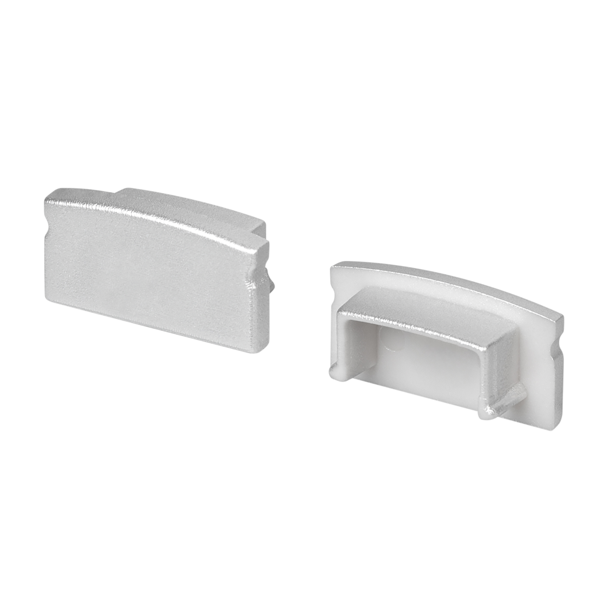 Пара заглушек для профиля LINE-1708. Материал - пластик. Цвет - серебристый. В комплекте 2 заглушки без отверстия. Цена за комплект.