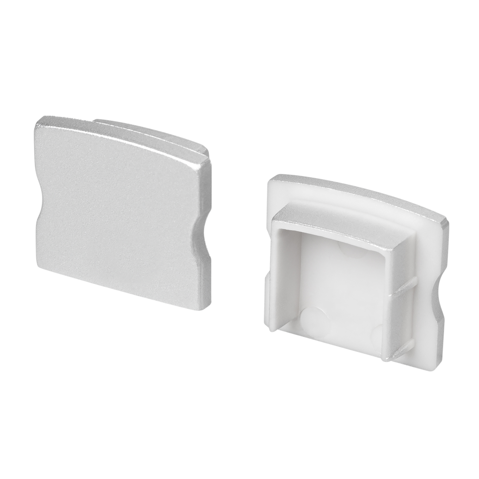 Пара заглушек для профиля LINE-1715. Материал - пластик. Цвет - серебристый. В комплекте 2 заглушки без отверстия. Цена за комплект.