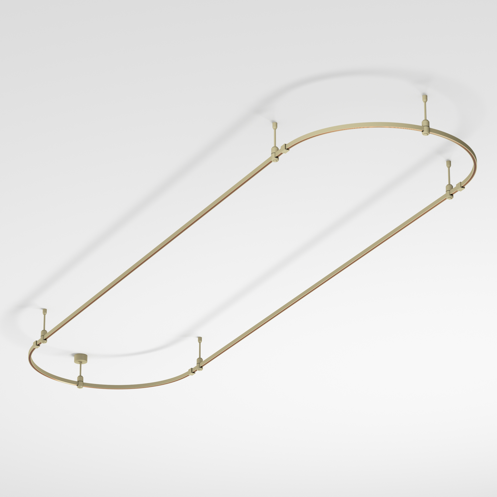 Подвесная конструкция APRIORI, форма овал. В комплекте треки с аксессуарами и жесткими подвесами длиной 200мм. Размер ДxШxВ: 3000x1000x22мм. Монтируется подвесным способом. Шинопровод рассчитан на работу с безопасным напряжением DC48В. Изготавливается из алюминия, анодированного в цвет серо-оливковый. Светильники и источники питания приобретаются отдельно.