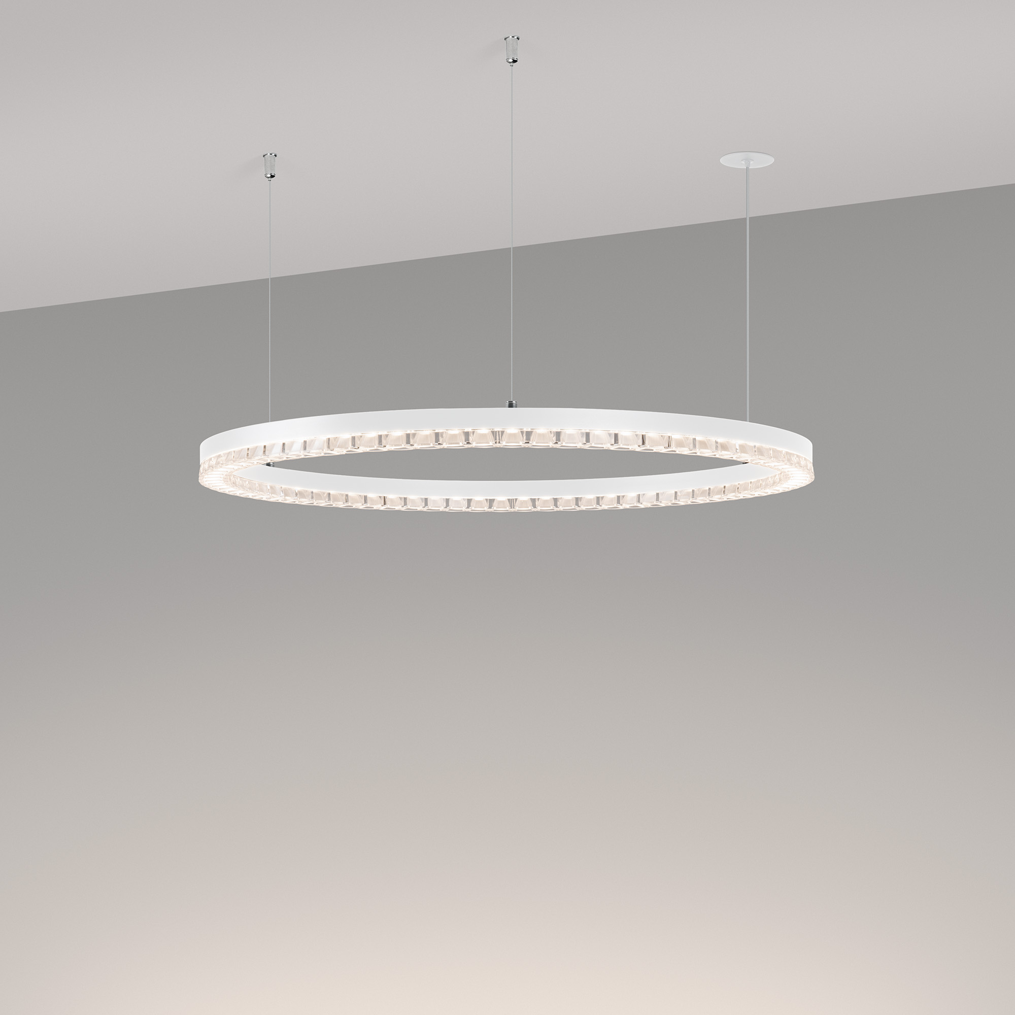Подвесные светильники DIAMOND сочетают в себе одновременно функциональный и декоративный свет, зрительный комфорт и создание дизайнерских композиций! Cветильники DIAMOND - отличный выбор для освещения в торговых центрах, офисах, галереях, МОП жилых домов бизнес-класса и выше. Алюминиевый окрашенный корпус светильника выполнен в форме круга. Необычная форма рассеивателя с линзами, напоминающая ювелирное украшение, будет изысканно смотреться в разных интерьерах. Индекс CRI>90 отвечает за отличное восприятие и передачу цветовых оттенков. Средний угол излучения 45 градусов универсален для реализации различных задач в светотехнических проектах. Подключение осуществляется с помощью встроенного драйвера напрямую к сети переменного тока 230 В. Управление яркостью по протоколу TRIAC позволяет легко отрегулировать нужный уровень освещения. Низкая пульсация обеспечивает комфортное освещение без мерцания. Пылевлагозащита на уровне IP20 позволяет применять модель только внутри помещений.