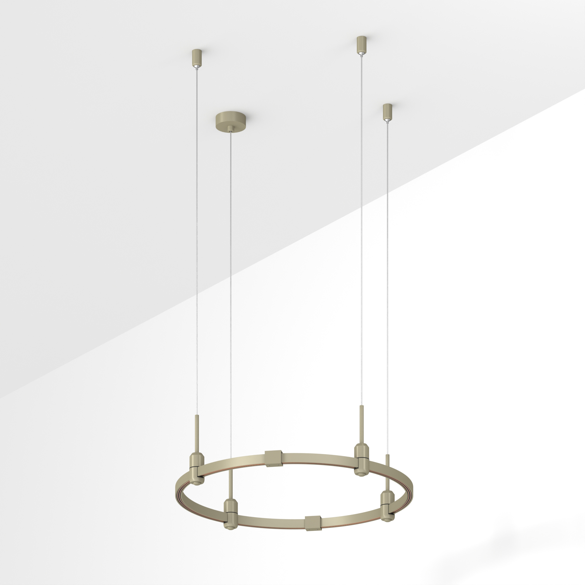 Подвесная конструкция APRIORI, форма круг. В комплекте треки с аксессуарами и гибкими подвесами. DC48V. Материал алюминий, цвет серо-оливковый. Размер: диаметр 600мм, высота 22мм. Светильники и источники питания приобретаются отдельно.