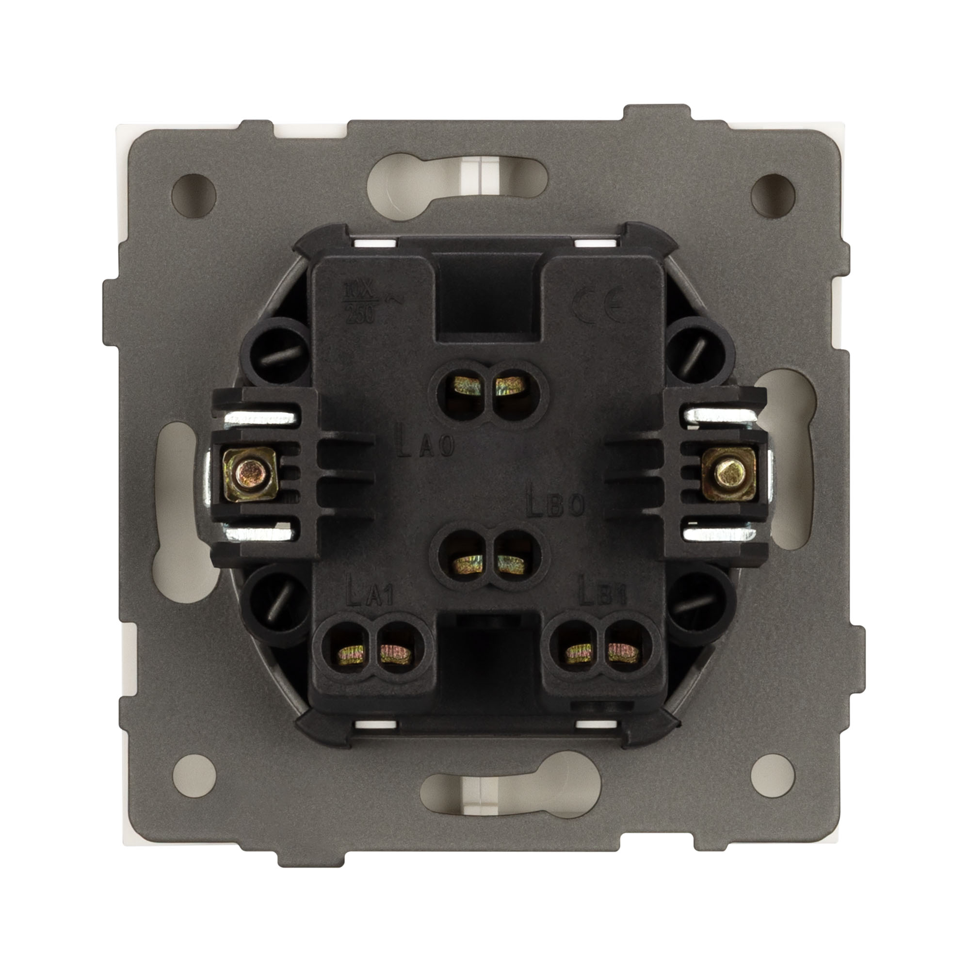 Механизм выключателя света совместим с рамками серии TENDO, создает утонченный минималистичный вид. Скрытый тип монтажа позволяет гармонично встроить в интерьер любого современного дизайн-проекта. Видимая часть механизма выполнена из высококачественного пластика матового белого цвета и имеет Soft-Touch покрытие, что придает изделию приятные тактильные ощущения и стильный внешний вид. Контактная часть присоединяется при помощи винтовых зажимов, позволяя надежно подсоединить механизм выключателя к питающим элементам. А усиленные распорные лапки двойного захвата надежно фиксируют механизм в установочном подрозетнике круглого сечения диаметром 60мм. Суппорт окрашен порошковой краской и выполнен из металла толщиной 1,5мм, что обеспечивает безопасность и уверенность в установке. На каждой стороне суппорта размещены фиксирующие элементы, позволяющие комбинировать механизмы в системы до 5шт горизонтально, под соответствующую рамку.