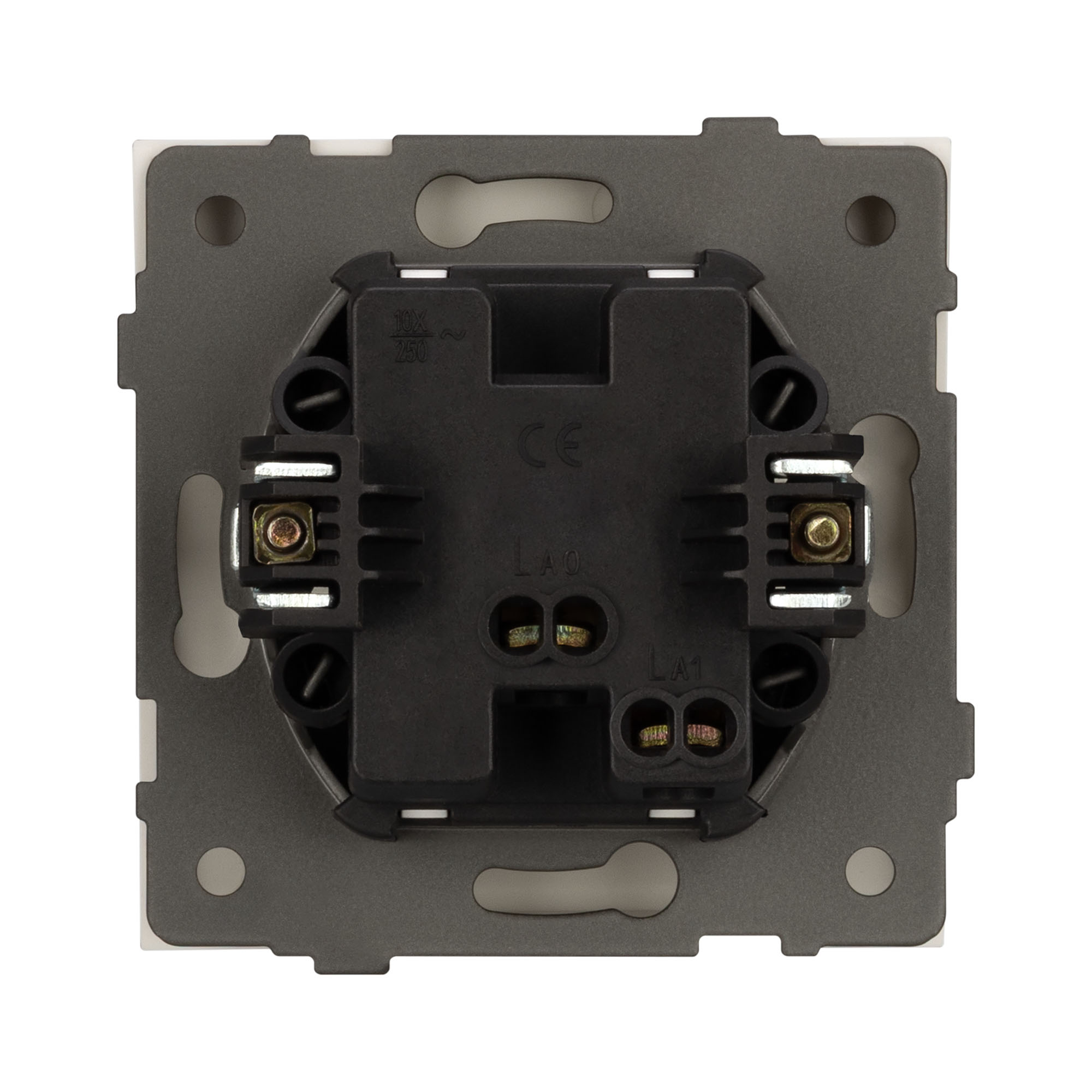 Механизм выключателя света совместим с рамками серии TENDO, создает утонченный минималистичный вид. Скрытый тип монтажа позволяет гармонично встроить в интерьер любого современного дизайн-проекта. Видимая часть механизма выполнена из высококачественного пластика матового белого цвета и имеет Soft-Touch покрытие, что придает изделию приятные тактильные ощущения и стильный внешний вид. Контактная часть присоединяется при помощи винтовых зажимов, позволяя надежно подсоединить механизм выключателя к питающим элементам. А усиленные распорные лапки двойного захвата надежно фиксируют механизм в установочном подрозетнике круглого сечения диаметром 60мм. На каждой стороне суппорта размещены фиксирующие элементы, позволяющие комбинировать механизмы в системы до 5шт горизонтально, под соответствующую рамку.