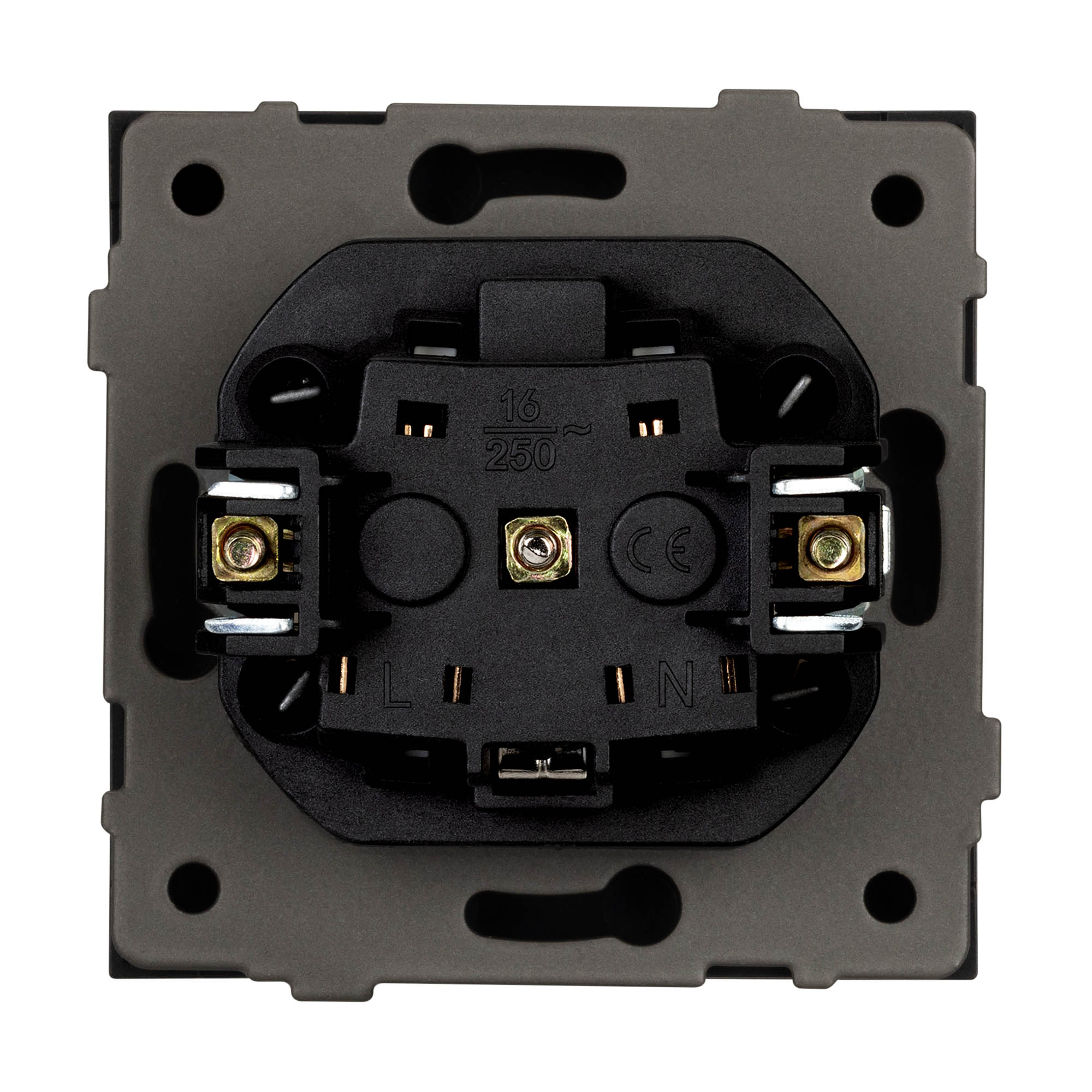 Механизм розетки с заземление совместим с рамками серии TENDO, создает утонченный минималистичный вид. Скрытый тип монтажа позволяет гармонично встроить в интерьер любого современного дизайн-проекта. Видимая часть механизма выполнена из высококачественного пластика матового графитового цвета и имеет покрытие Soft-Touch. Розетка оснащена защитными шторками, которые защищают механизм устройства от повреждений и загрязнений, а также обеспечивают безопасное использование для каждого пользователя. Металлический суппорт окрашен порошковой краской в несколько слоев и выполнен из металла толщиной 1,5мм, что обеспечивает безопасность и уверенность в установке. А усиленные распорные (монтажные) лапки надежно фиксируют механизм в стандартном установочном подрозетнике. На каждой стороне суппорта размещены фиксирующие элементы, позволяющие комбинировать механизмы в системы до 5шт горизонтально, под соответствующую рамку.