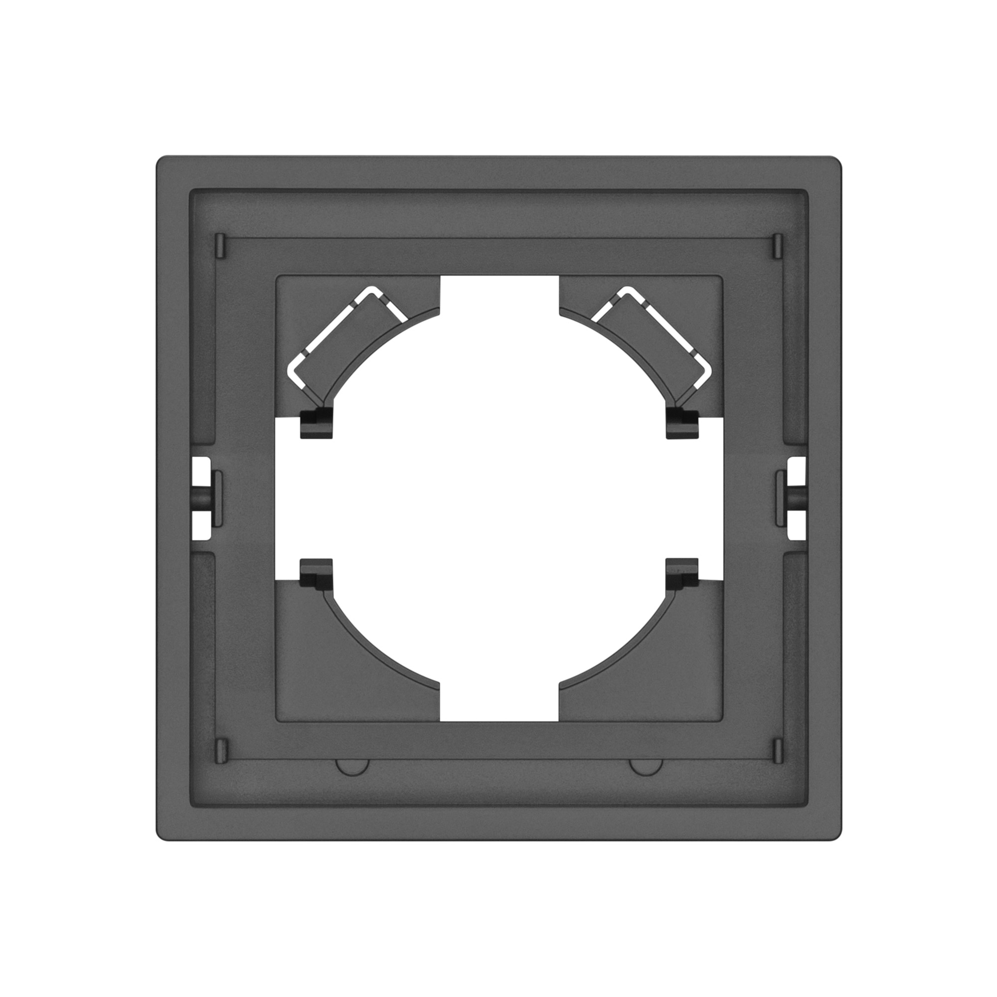 Рамка пластиковая на 1 пост, под встраиваемый механизм. Цвет - матовый графитовый, с Soft-Touch покрытием. Уровень герметичности IP20. Ориентация монтажа горизонтальная. Габаритные размеры: длина 80 мм, ширина 80 мм, высота 9 мм. Гарантийный срок 12 мес.