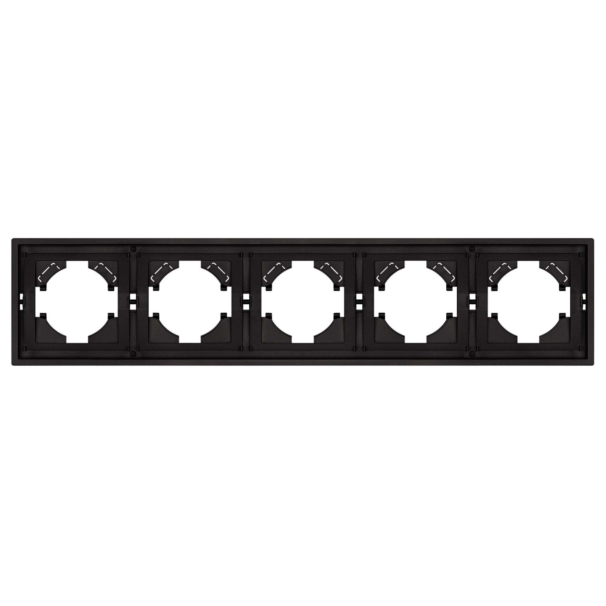 Рамка пластиковая на 5 постов, под встраиваемый механизм. Цвет - матовый черный, с Soft-Touch покрытием. Уровень герметичности IP20. Ориентация монтажа горизонтальная. Габаритные размеры: длина 364 мм, ширина 80 мм, высота 9 мм. Гарантийный срок 12 мес.