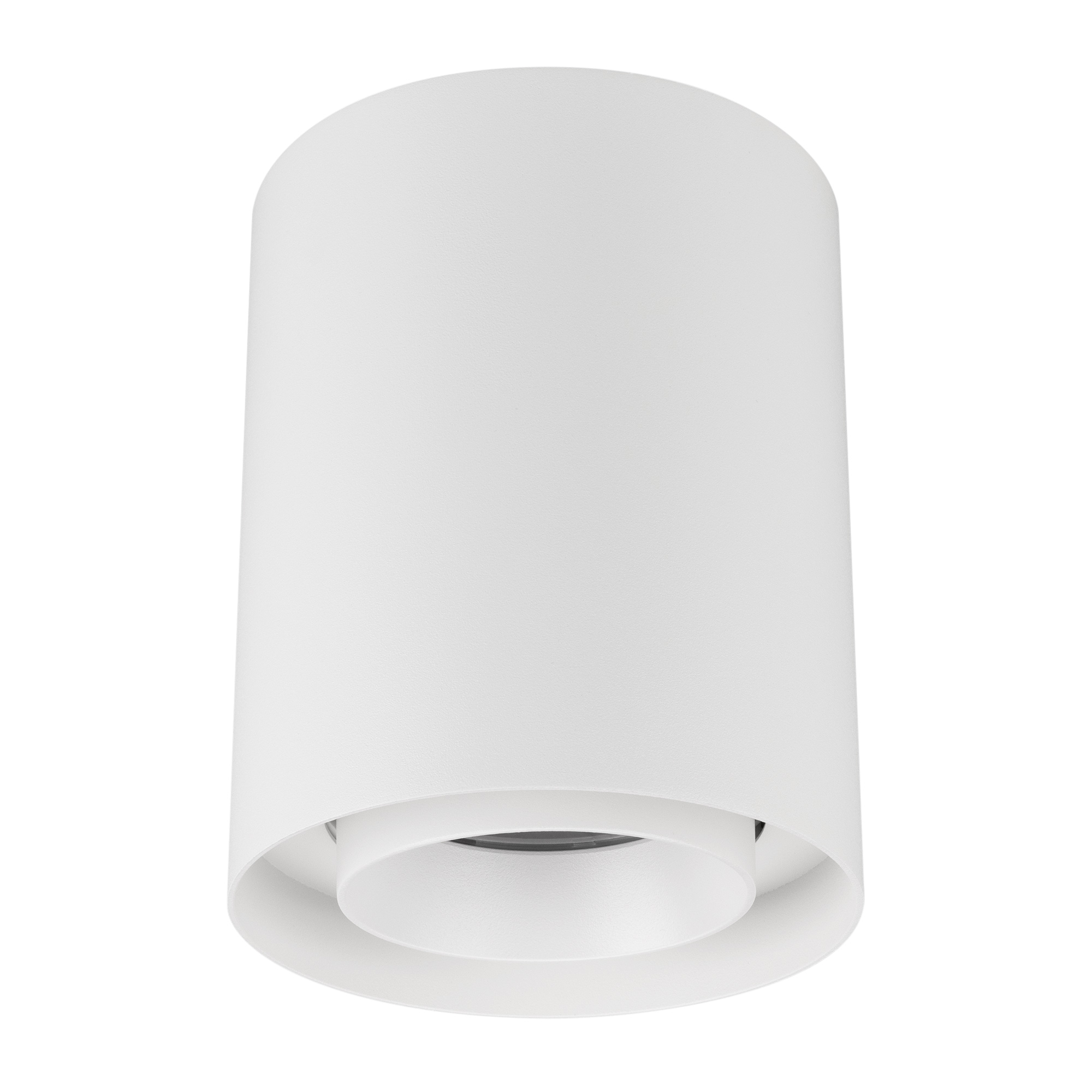 Накладной интерьерный светильник. Мощность 24 Вт, св. поток 2400 лм, 99 лм/Вт, теплый 3000 K, CRI>90, угол 50°, регулируемое направление луча 40°(20+20), поворотный световой модуль вокруг своей оси на 340°, UGR <11, напряжение питания 230 В. Белый круглый корпус из алюминия, степень защиты IP54. Размер: диаметр 132 мм, высота 165 мм. Монтаж накладной. Драйвер 27-45 В, 600мА, пульсация <1%.