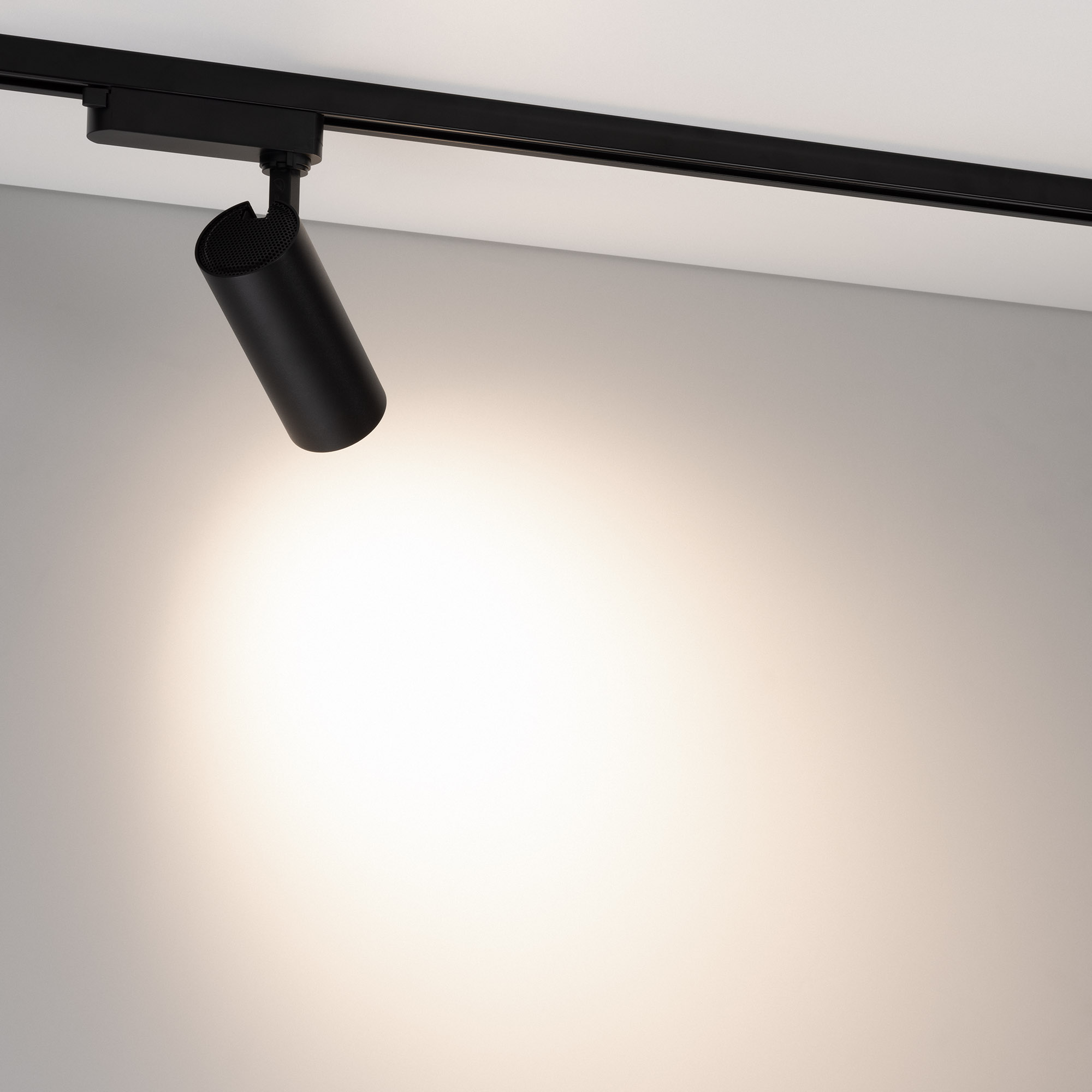 Светильник для треков/шин 2 провода. Мощность 15 Вт, св. поток без решетки honeycomb 1500 лм, 100 лм/Вт, с решеткой honeycomb 990 лм, 66 лм/Вт, дневной 4000 K, CRI>90, угол 55°, напряжение питания 230 В. Черный круглый корпус из алюминия, материал линзы PMMA, степень защиты IP20. Антибликовая решетка honeycomb в комплекте. Размер: диаметр 60 мм, длина световой части 141 мм. Монтаж на трек 1-фазный. Драйвер встроенный 350 мА 25-40 В, пульсация <5%.