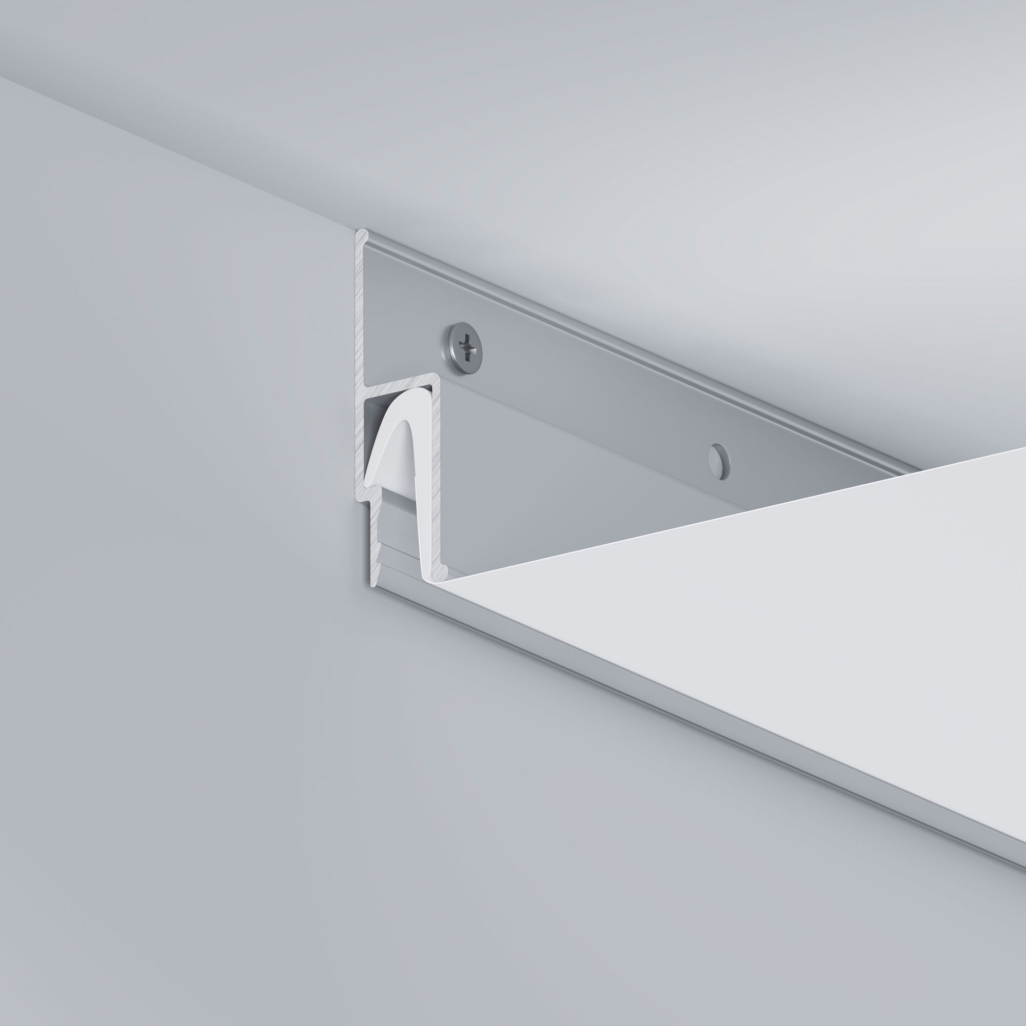 Накладной алюминиевый профиль для монтажа натяжного потолка с использованием гарпунной системы.