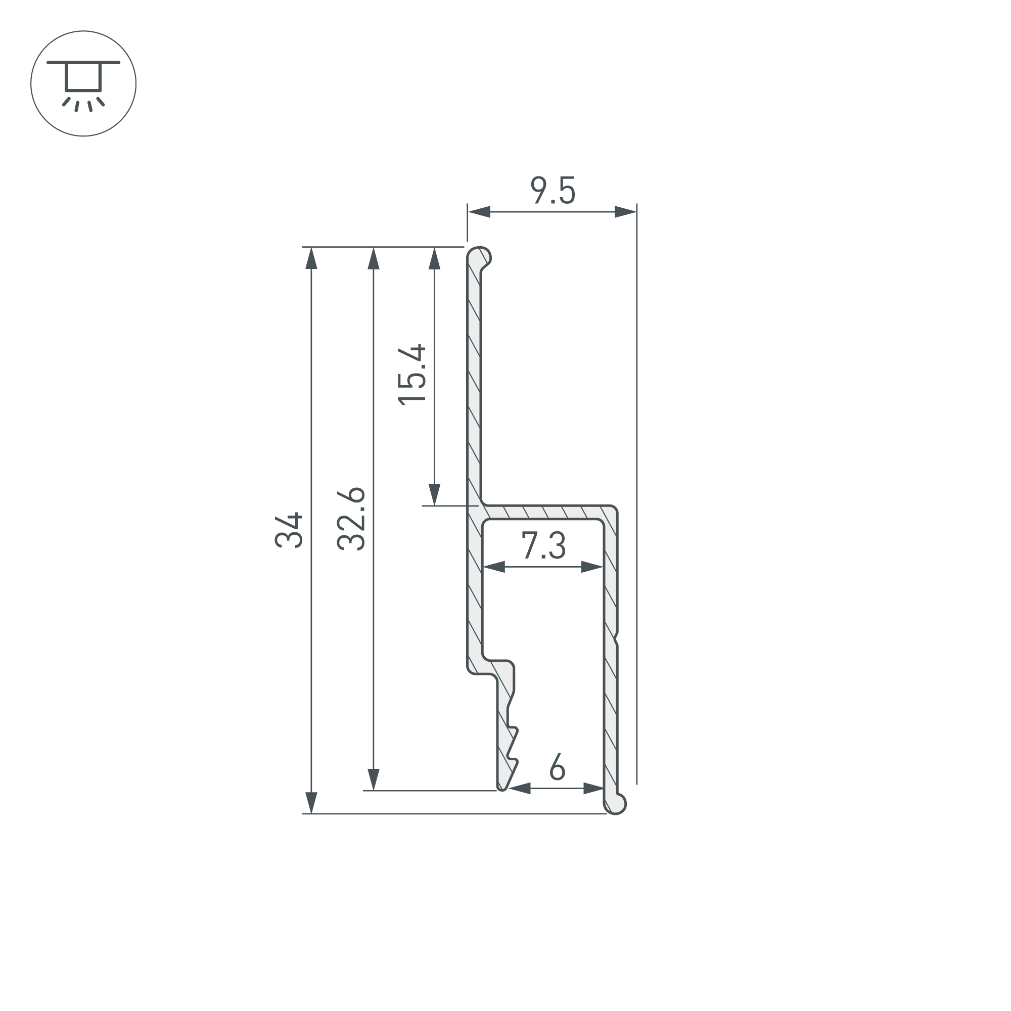 Габаритные размеры профиля составляют 2000 мм в длину, 10 мм в ширину и 34 мм в высоту.