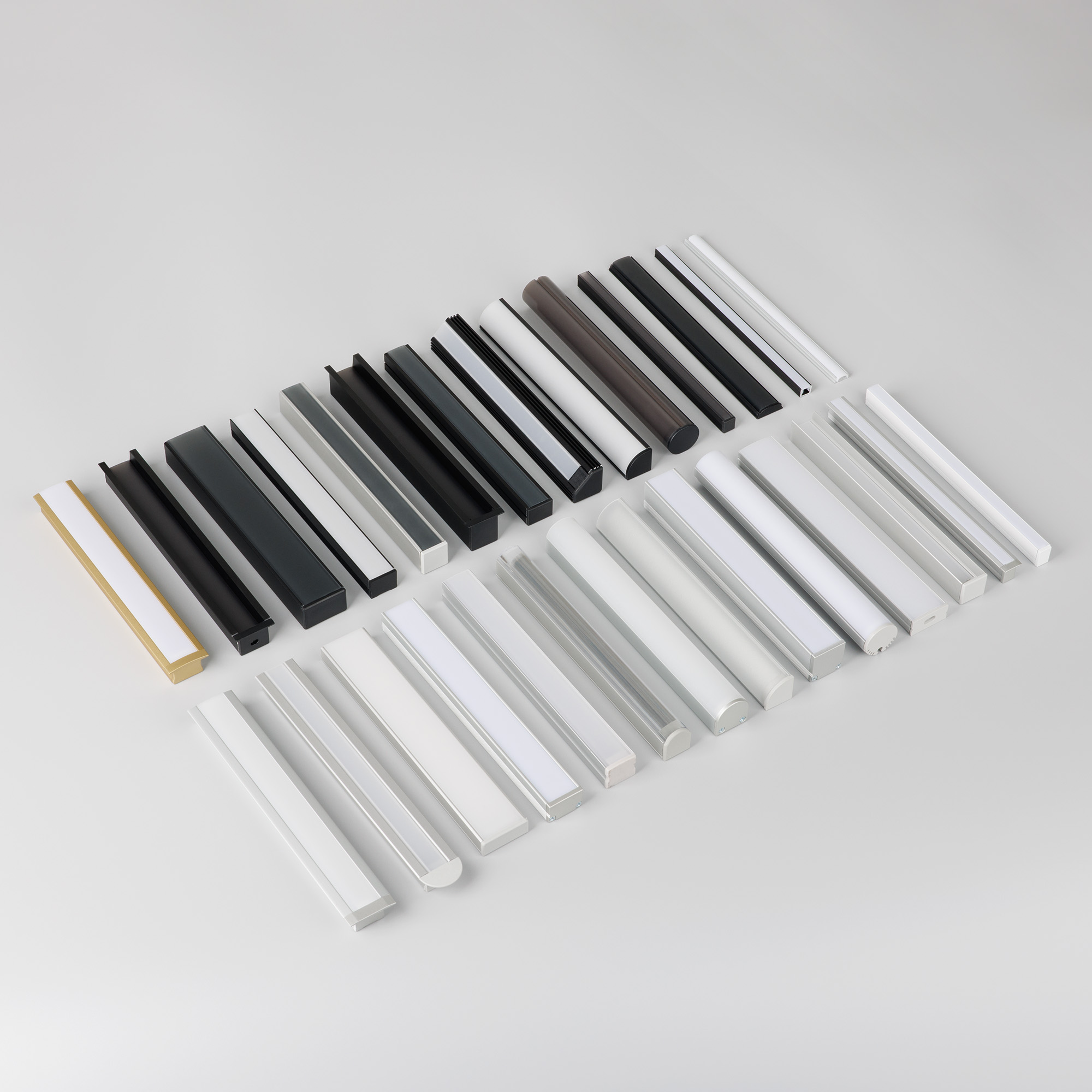 Набор образцов профилей для декоративной, контурной подсветки ARLIGHT с экранами и заглушками. Длина отрезков 50 мм.