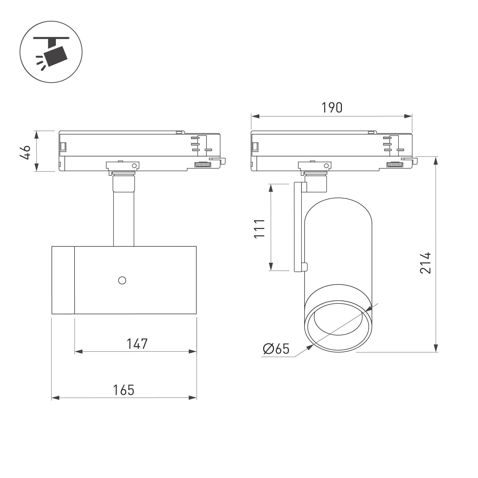 Светильник для треков/шин 4 провода, 18Вт. Управление и изменение цветовой температуры по протоколу DALI. Цвет свечения меняется в диапазоне 2700К - 4000К, световой поток при 2700К - 1120лм, при 4000К - 1300лм, 62лм/Вт, угол 20°, CRI>95. Корпус круглый, алюминий, цвет белый, IP20. Угол поворота светильника -350° (±175°). Угол наклона светового элемента - 308° (±154°). Размеры Ø65x190x220 мм. Входное напряжение AC220-240V, мощность 18Вт. Драйвер встроенный (8-40В, 450мА), пульсация <0.3%