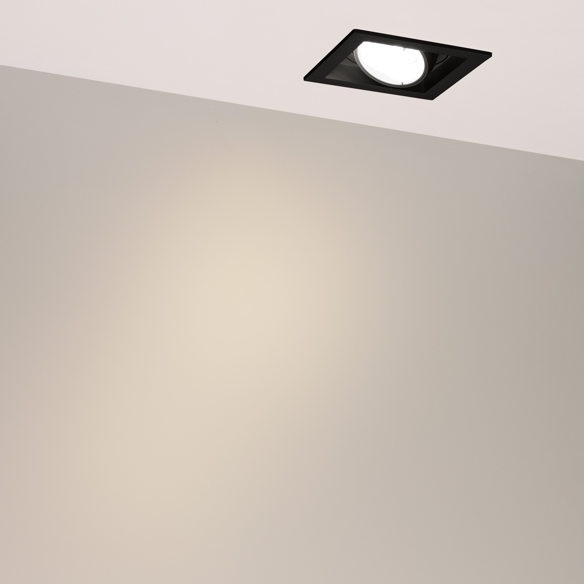 Поставка под заказ от 60 шт. Встраиваемый карданный светильник. Мощность 20 Вт, св. поток 2067 лм, 106 лм/Вт, тёплый 3000 K, CRI>92, угол 20°, напряжение питания 230 В. Чёрный корпус из алюминия, чёрная вставка, степень защиты IP20. Размер: длина 117 мм, ширина 117 мм, высота 105 мм. Монтаж встраиваемый, установочное отверстие: длина 95 мм, ширина 95 мм. Драйвер 24-42 В, 500 мА, пульсация <2%.