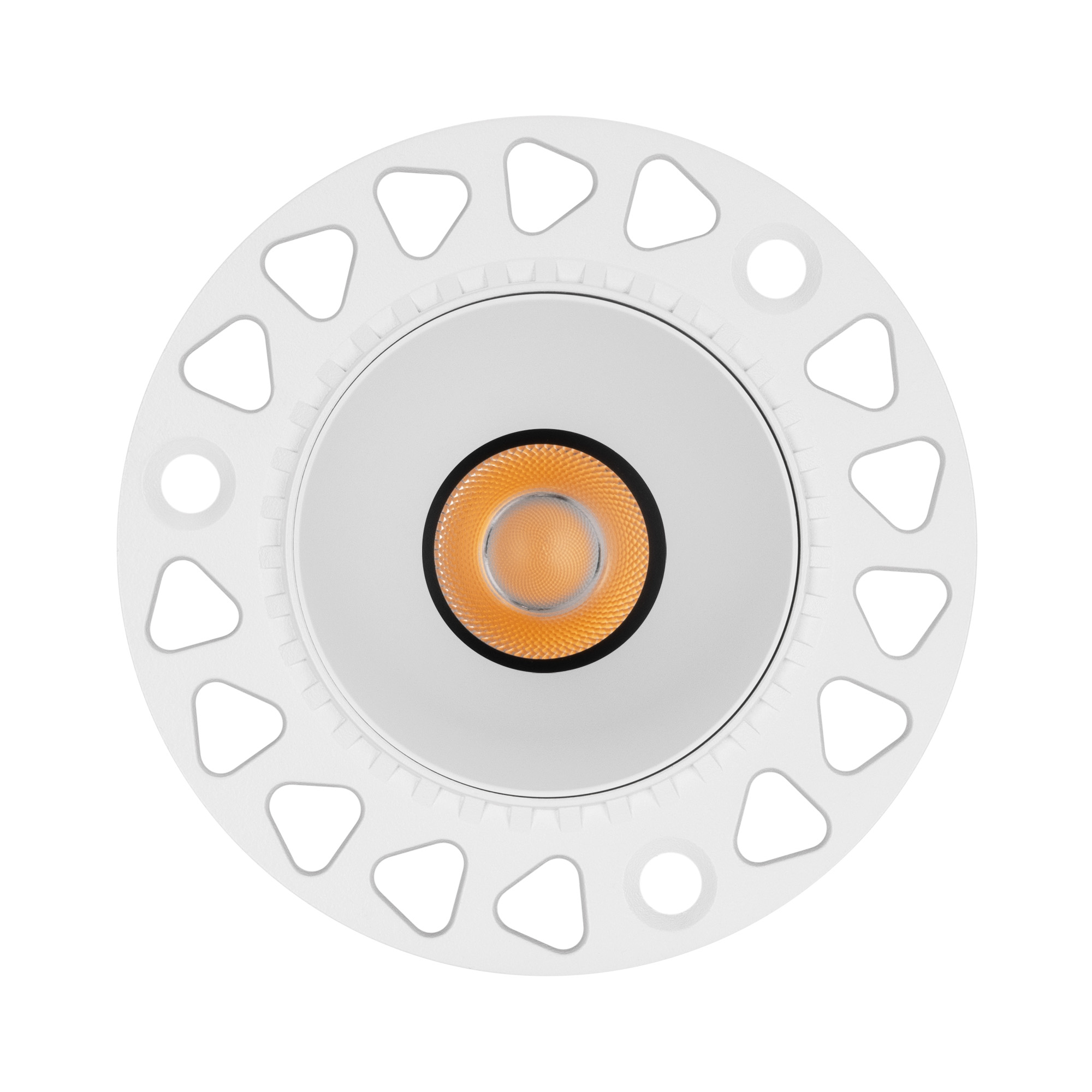 Встраиваемый светильник даунлайт. Мощность 7 Вт, св. поток 405 лм, 55 лм/Вт, теплый 3000 K, CRI>92, угол 24°, напряжение питания 230 В. Белый круглый корпус из алюминия, белый матовый отражатель, степень защиты IP20 . Размер: диаметр 85 мм, высота 72 мм. Монтаж встраиваемый, установочное отверстие: диаметр 55 мм. Драйвер, 27-42 В, 150 мА, пульсация <0,5%.