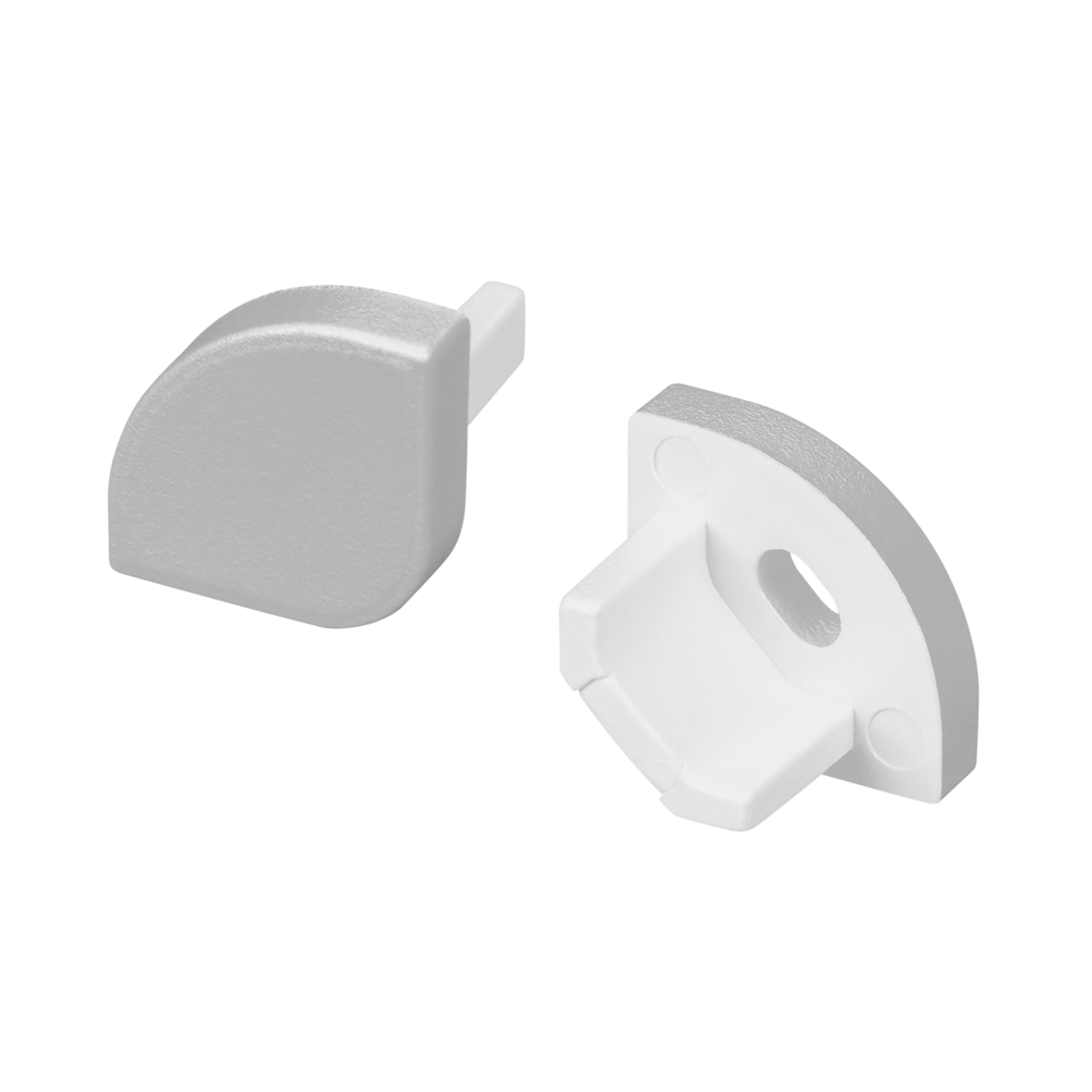 Пара заглушек (одна - с отверстием, вторая - глухая) для профиля ARH-KANT-H8. Цвет - серебристый. В комплекте 2 заглушки. Цена за комплект.