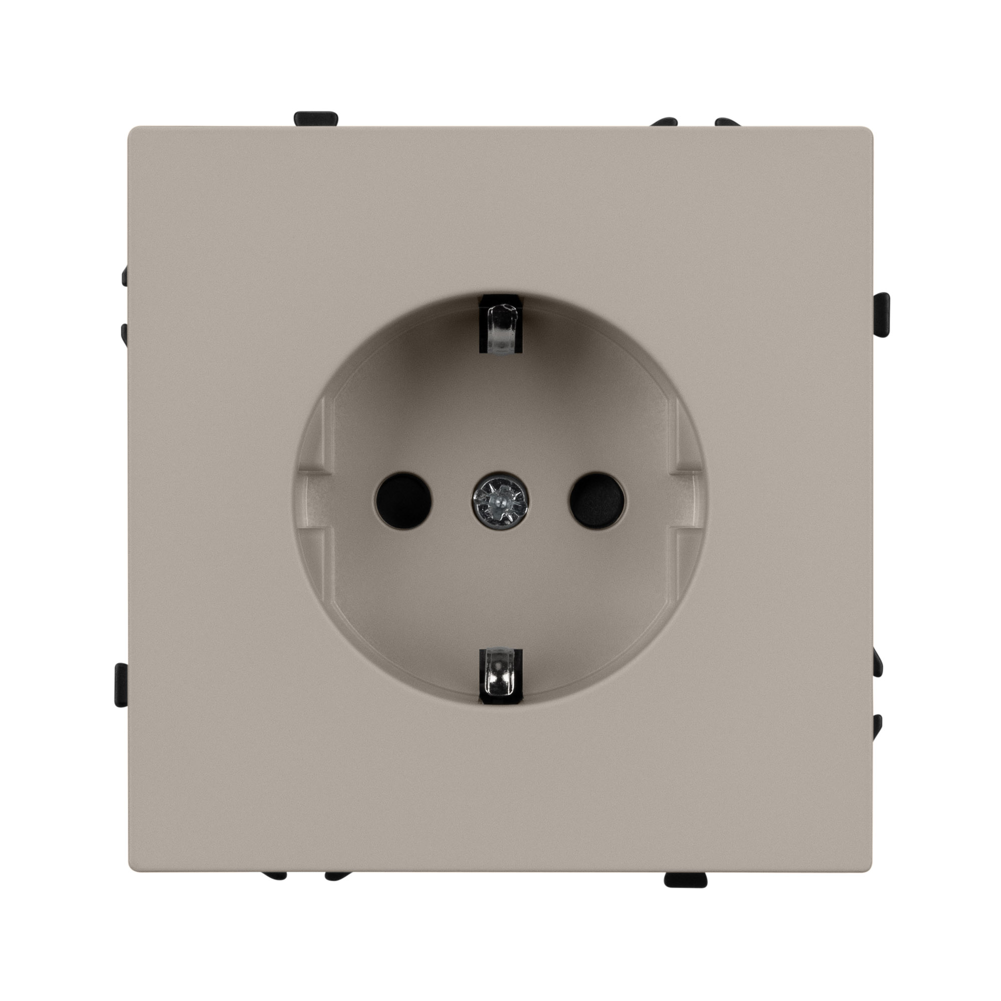 Строгие геометрические линии гармонично сочетаются с функциональностью продуманных механизмов, создавая идеальное решение для дизайн-проектов, где важны как эстетика, так и практичность. Механизм розетки с заземлением совместим с рамками серии NOBE, создает утонченный минималистичный вид. Скрытый тип монтажа позволяет гармонично встроить в интерьер любого современного дизайн-проекта. Видимая часть механизма выполнена из высококачественного пластика цвета кашемир и имеет Soft-Touch покрытие, что придает изделию приятные тактильные ощущения и стильный внешний вид. Розетка оснащена заземляющими контактами и защитными шторками, обеспечивая надежное и безопасное подключение электроприборов. Соединение посредством быстрозажимных контактов, позволяет надежно подсоединить механизм розетки к питающим элементам, минимизируя затраченное время на монтаж. А усиленные распорные лапки двойного захвата надежно фиксируют механизм в установочном подрозетнике круглого сечения диаметром 60мм. Суппорт окрашен в черный матовый цвет под основу механизма и выполнен из металла толщиной 1,5мм, что обеспечивает безопасность и уверенность в установке. На каждой стороне суппорта размещены фиксирующие элементы, позволяющие комбинировать механизмы в системы до 5шт как горизонтально, так и вертикально.