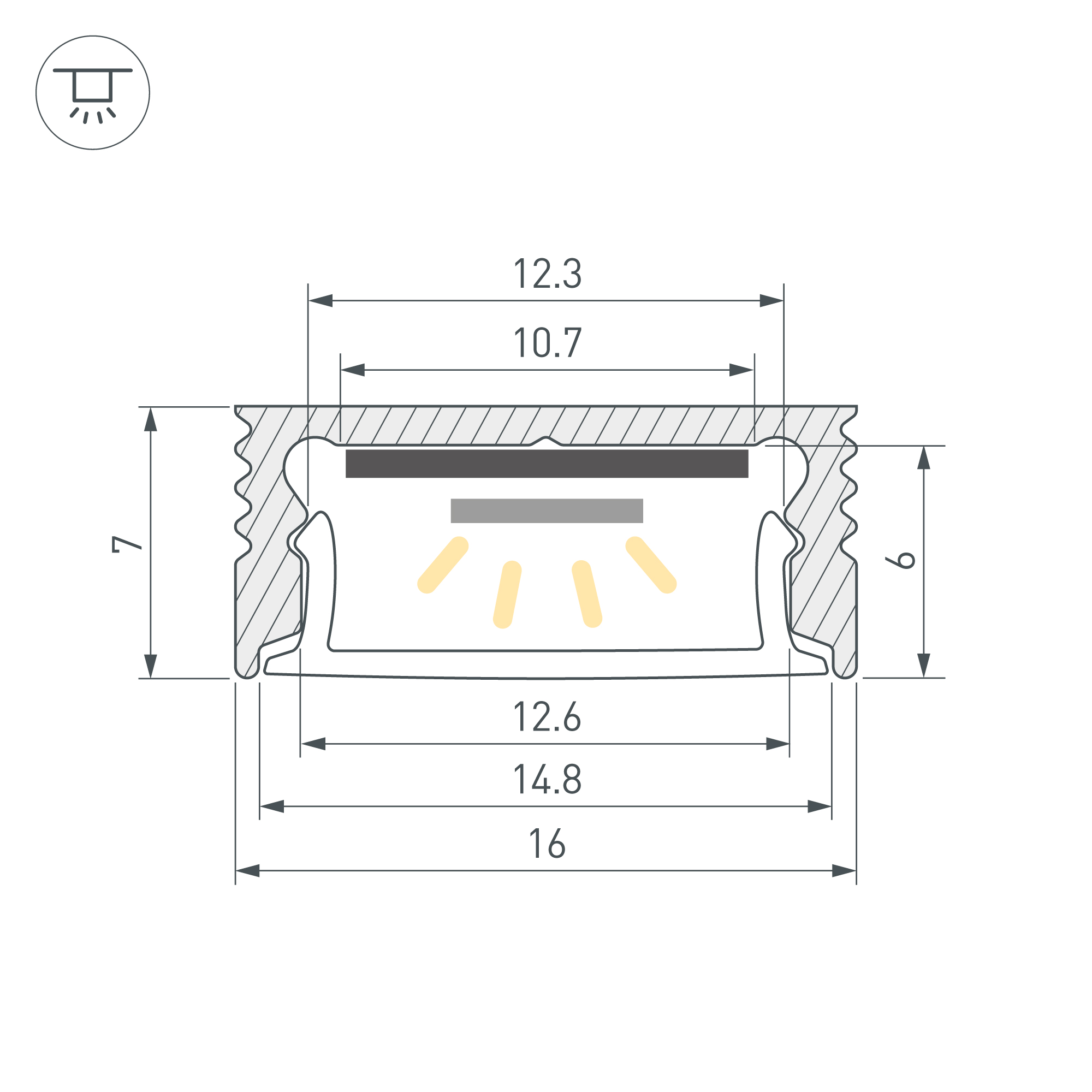 Алюминиевый анодированный профиль для светодиодных лент и линеек. Габаритные размеры (L×W×H): 2000x16x7 мм. Ширина площадки для ленты 10,7 мм. Экраны, заглушки и другие аксессуары приобретаются отдельно. Цена за 1 метр.