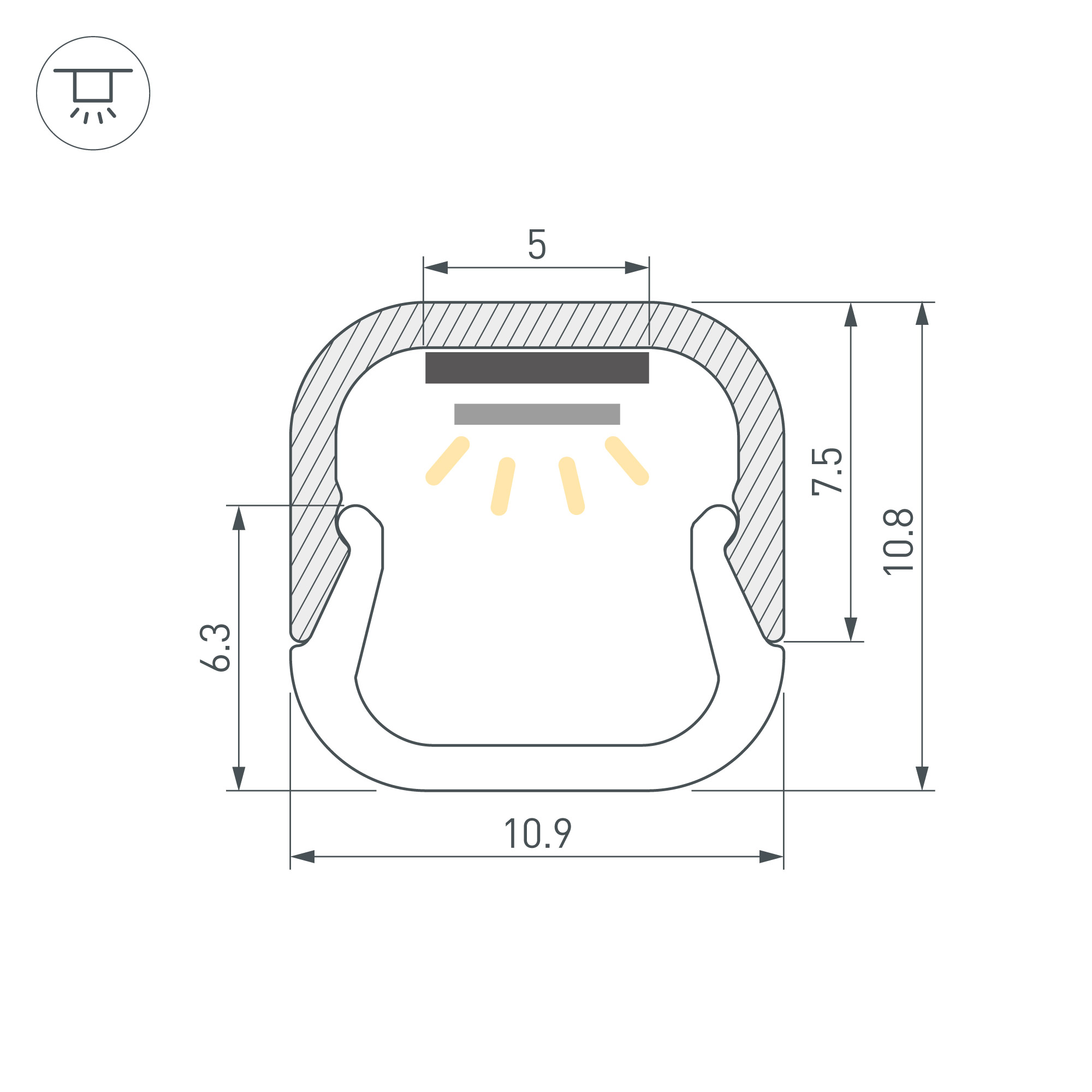 Накладной профиль из анодированного алюминия для подсветки мебели, пазов, ниш и других элементов интерьера. Габаритные размеры профиля составляют 2000 мм в длину, 11 мм в ширину и 7,5 мм в высоту (с экраном 2000x11x11 мм). Площадка для установки светодиодных лент позволяет использовать ленту шириной до 5 мм и мощностью до 10 Вт/м. Это обеспечивает гибкость в выборе светодиодных лент и создает потрясающие световые решения.