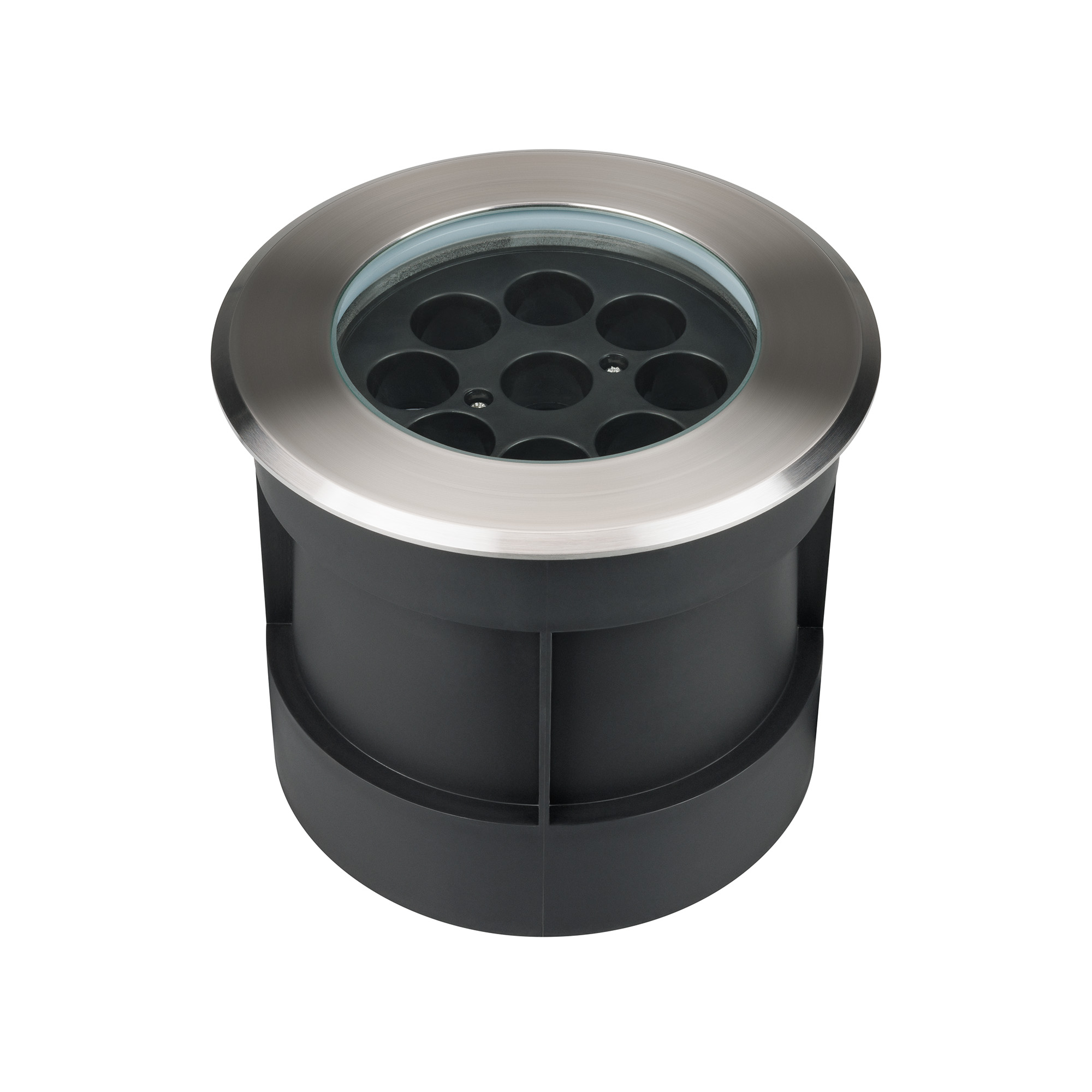 Встраиваемый светодиодный светильник для грунта и пола. Мощность 16Вт, световой поток 1460 лм, цвет дневной 4000К. CRI(Ra)>80, угол 20°. Круглый влагозащищенный корпус IP67, нержавеющая сталь. Экран закалённое стекло. Питание 230В, 16Вт. Размер DxH Ø160x135мм. Установка в отверстие DxH Ø146x130мм.