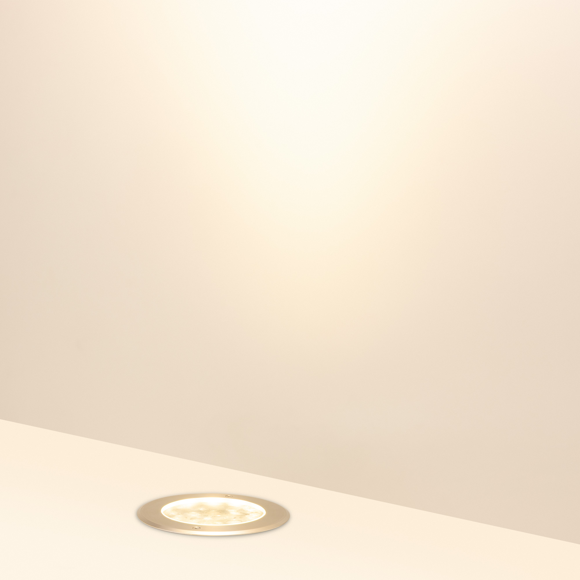 Встраиваемый светодиодный светильник для грунта и пола. Мощность 36Вт, световой поток 2824 лм, цвет теплый 3000К. CRI(Ra)>80, угол 35°. Круглый влагозащищенный корпус IP67, нержавеющая сталь. Экран закалённое стекло. Питание 230В, 36Вт. Размер DxH Ø210x125мм. Установка в отверстие DxH Ø195x119мм.