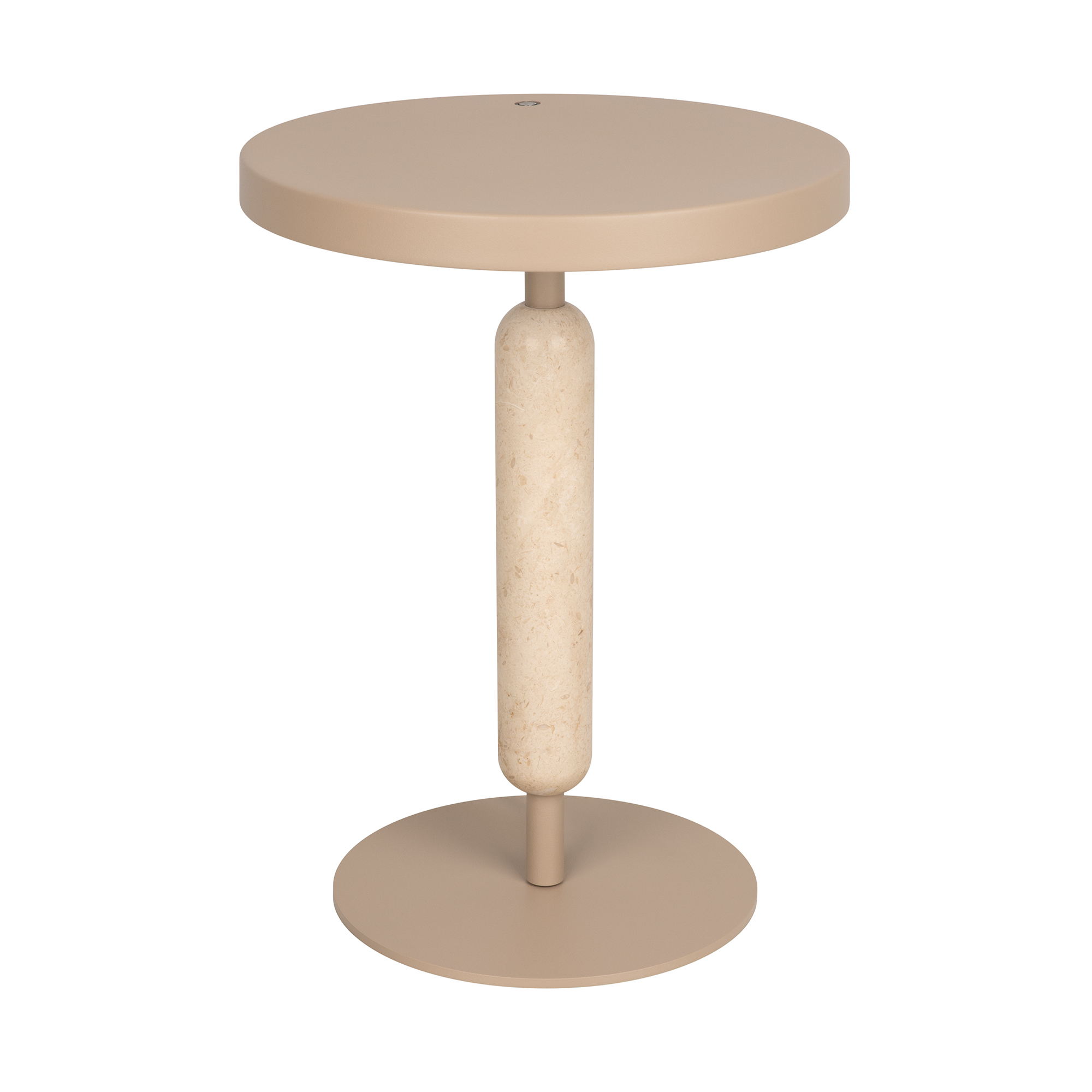 Настольный светильник ALYSS. С изменяемой цветовой температурой 2700/3200/4000К, переключается коротким нажатием на сенсорную кнопку на плафоне, диммирование происходит за счет ее удержания. Мощность 5 Вт, св. поток 195 лм, 39 лм/Вт, CRI>92, угол 110°, напряжение питания 230 В. Бежевый корпус из алюминия, декоративная вставка из мрамора, степень защиты IP20. Размер: диаметр 225 мм, высота 300 мм. Пульсация <1%.