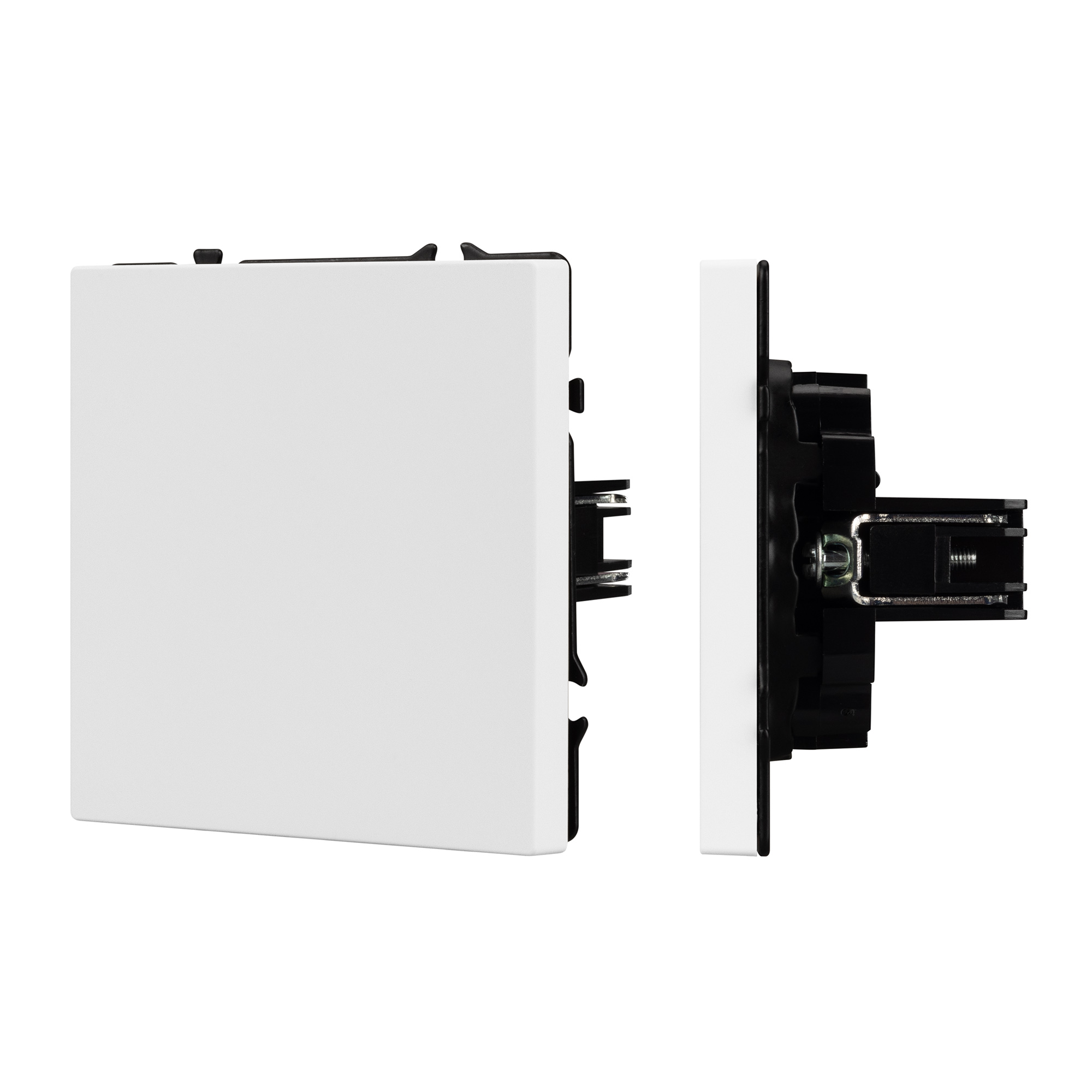Строгие геометрические линии гармонично сочетаются с функциональностью продуманных механизмов, создавая идеальное решение для дизайн-проектов, где важны как эстетика, так и практичность. Заглушка поста совместима с рамками серии NOBE, создает утонченный минималистичный вид. Скрытый тип монтажа позволяет гармонично встроить в интерьер любого современного дизайн-проекта. Видимая часть выполнена из высококачественного пластика цвета белый кварц и имеет Soft-Touch покрытие, что придает изделию приятные тактильные ощущения и стильный внешний вид. Заглушка предназначена для перекрытия поста под дальнейшее размещение механизма, не имеет питающих элементов и выполняет декоративную функцию. Усиленные распорные лапки двойного захвата надежно фиксируют устройство в установочном подрозетнике круглого сечения диаметром 60мм. Суппорт окрашен в черный матовый цвет и выполнен из металла толщиной 1,5мм, что обеспечивает безопасность и уверенность в установке. На каждой стороне суппорта размещены фиксирующие элементы, позволяющие комбинировать механизмы в системы до 5шт как горизонтально, так и вертикально.
