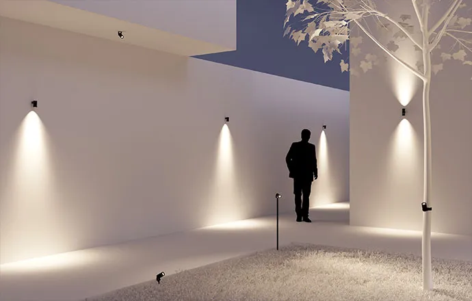 Настенные светильники и прожекторы для ландшафтного освещения парковых и садовых дорожек, организации локального декоративного освещения фасадов и других объектов, создания статичных и динамических световых композиций.
