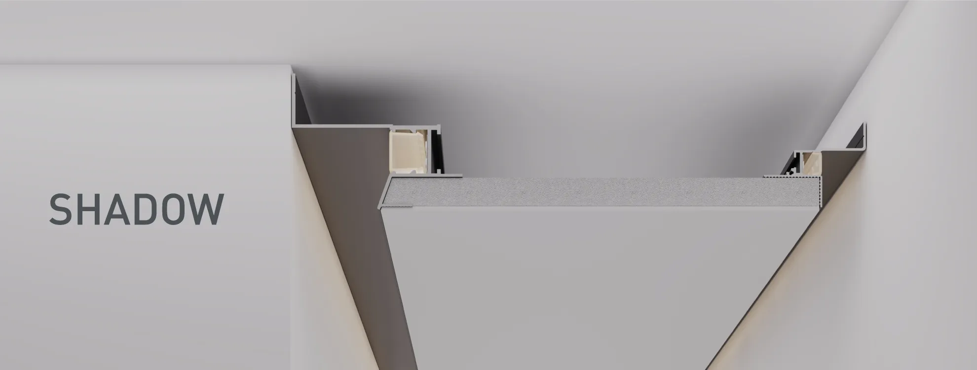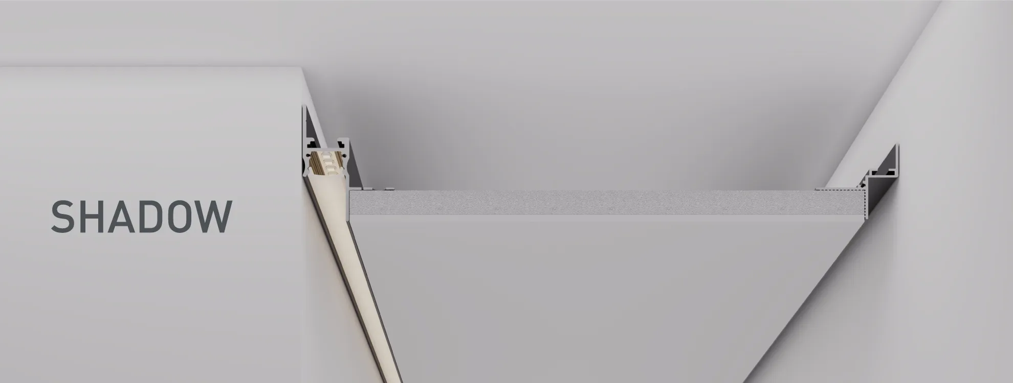 Профили SHADOW позволяют создать теневой зазор между стеной и потолком из ГКЛ как с подсветкой, так и без нее. Решение с подсветкой создает визуальный эффект парящего в воздухе потолка с мягким свечением по периметру комнаты, а теневой зазор без подсветки придает аккуратность и законченность интерьеру.