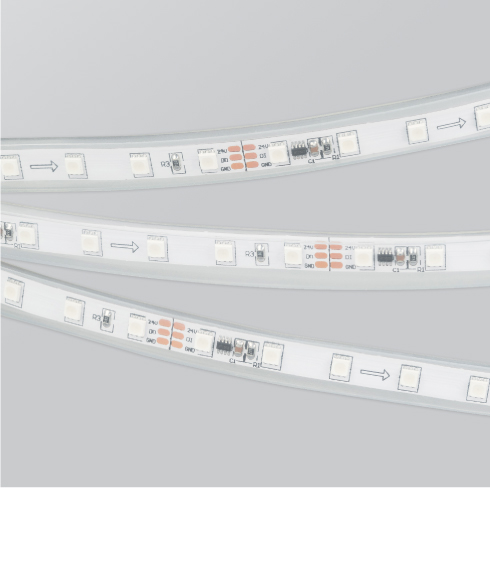 Ленты бегущий огонь SPI, серия F72. Тип светодиодов 3535 (F), 72 светодиода на 1 метр. Герметизация IP66, тип покрытия P-силиконовая трубка. Для создания рекламных вывесок, оформления витрин, изготовления медиафасадов.