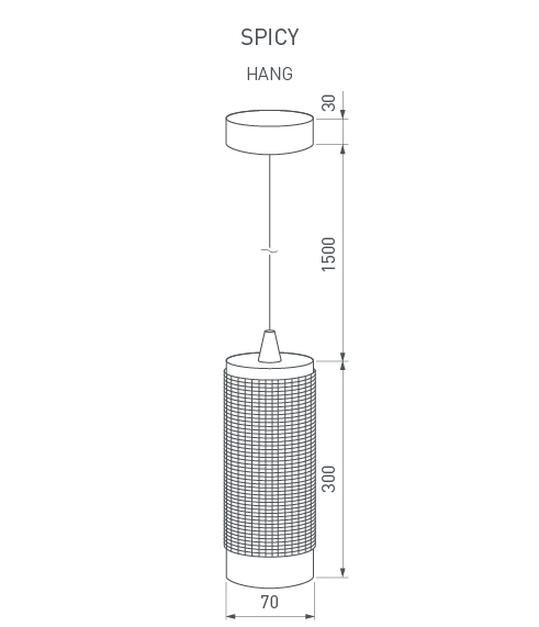 SP-SPICY-HANG Подвесные светильники выпускаются с корпусом белого, черного и золотистого цвета. Подвесные модели имеют регулируемый токопроводящий трос 1500 мм, длину которого можно менять и фиксировать с помощью зажима.